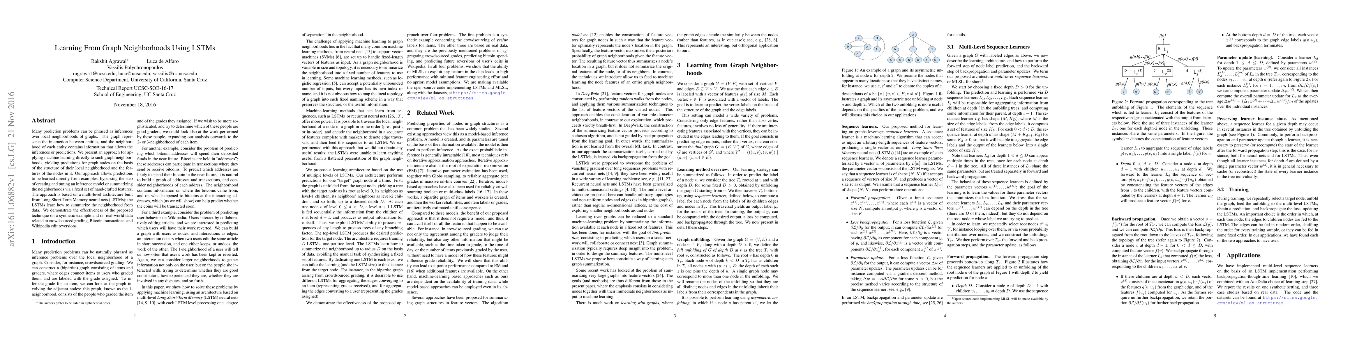 A new machine learning approach uses Long Short-Term Memory neural nets to learn predictions from graph neighborhoods, bypassing manual feature extraction. The method effectively solves prediction problems on real-world data related to crowdsourced grading, Bitcoin transactions, and Wikipedia edit reversions.
