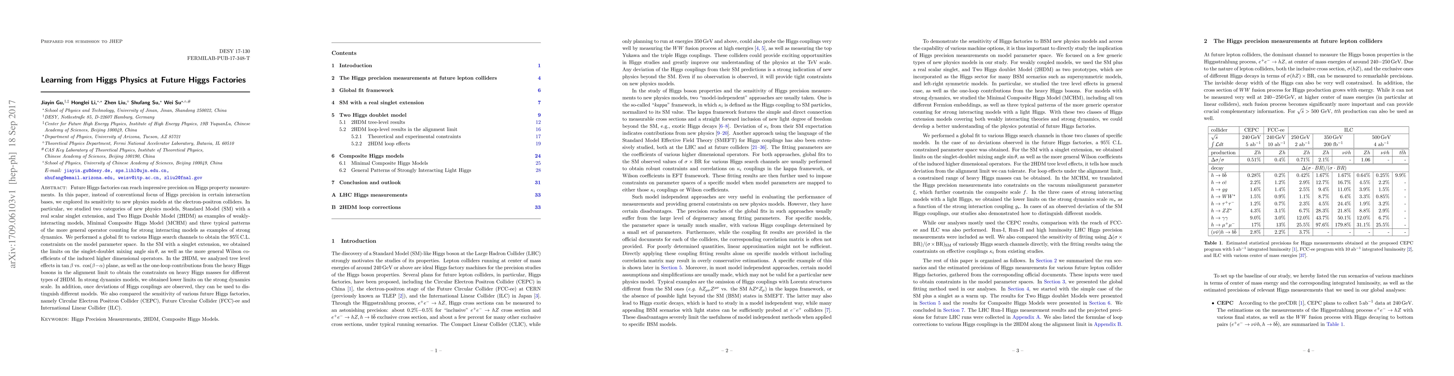 This paper investigates the potential of future Higgs factories to probe new physics models beyond the Standard Model through precise Higgs measurements at electron-positron colliders. It explores both weakly-interacting models like the Standard Model with a scalar singlet extension and the Two Higgs Double Model, as well as strongly-interacting models like the Minimal Composite Higgs Model, comparing their parameter constraints and the ability to distinguish between them.