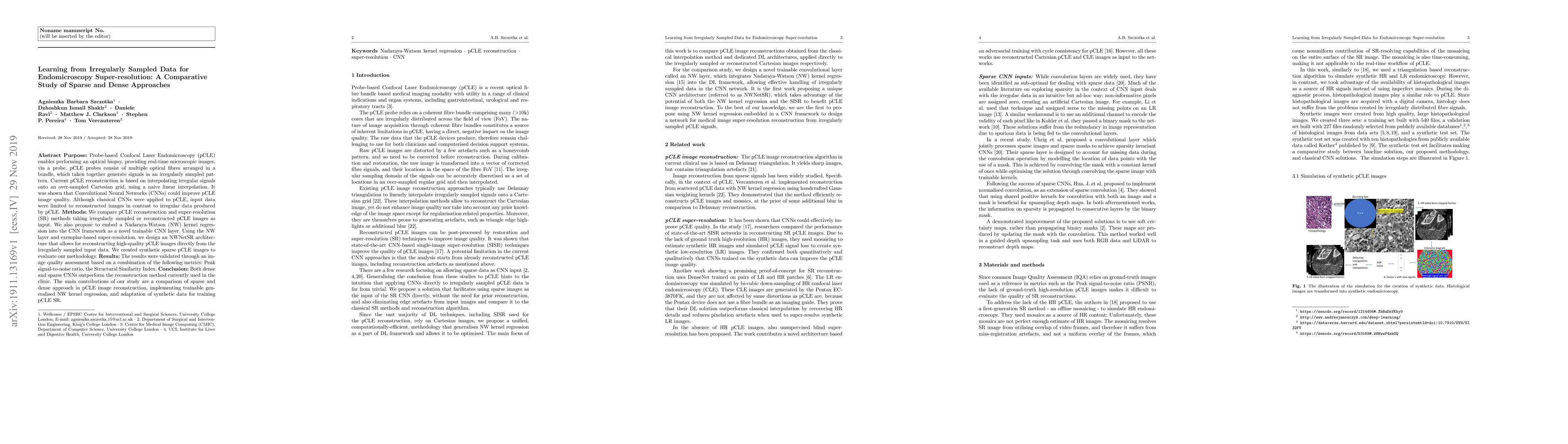 This study compares dense and sparse Convolutional Neural Networks (CNNs) for reconstructing high-quality images from irregularly sampled data in probe-based Confocal Laser Endomicroscopy (pCLE). The proposed NWNetSR architecture, incorporating a trainable Nadaraya-Watson kernel regression layer, outperforms current interpolation methods, demonstrating superior image quality.