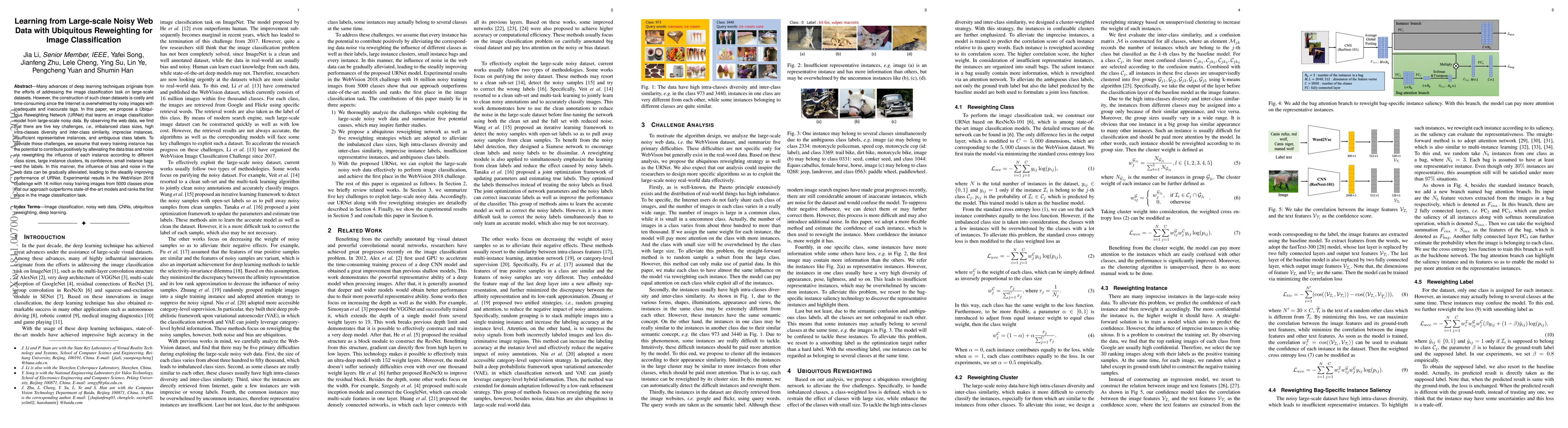 This paper proposes a Ubiquitous Reweighting Network (URNet) to classify images from large-scale noisy web datasets by reweighting training instances to mitigate data bias and noise. URNet addresses challenges such as imbalanced class sizes and ambiguous labels, achieving top performance in the WebVision 2018 challenge.