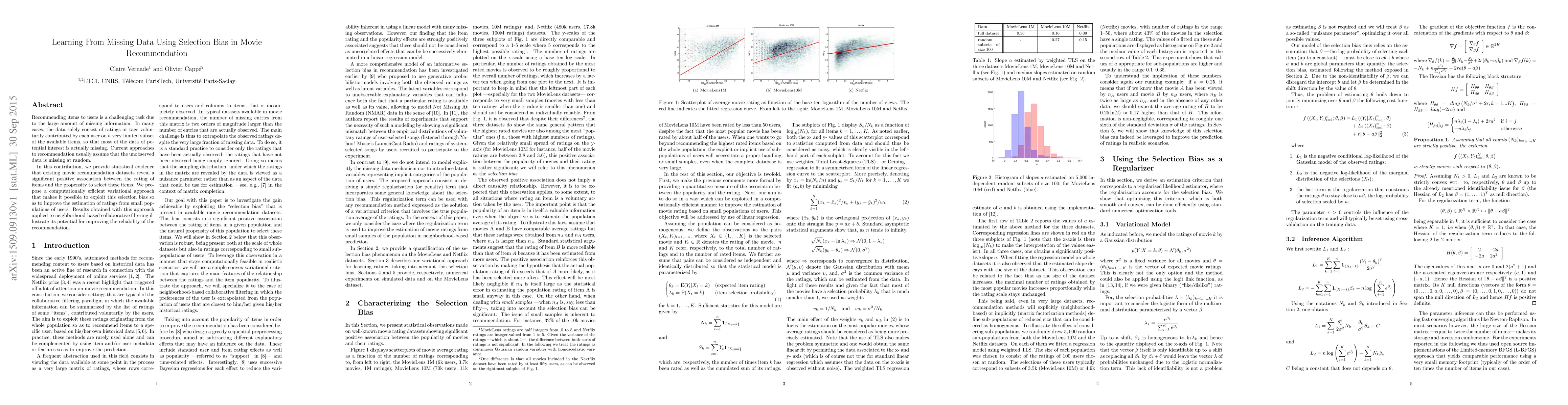 Recommending items to users is a challenging task due to the large amount of missing information. In many cases, the data solely consist of ratings or tags voluntarily contributed by each user on a very limited subset of the available items, so that most of the data of potential interest is actually missing. Current approaches to recommendation usually assume that the unobserved data is missing at random. In this contribution, we provide statistical evidence that existing movie recommendation datasets reveal a significant positive association between the rating of items and the propensity to select these items. We propose a computationally efficient variational approach that makes it possible to exploit this selection bias so as to improve the estimation of ratings from small populations of users. Results obtained with this approach applied to neighborhood-based collaborative filtering illustrate its potential for improving the reliability of the recommendation.