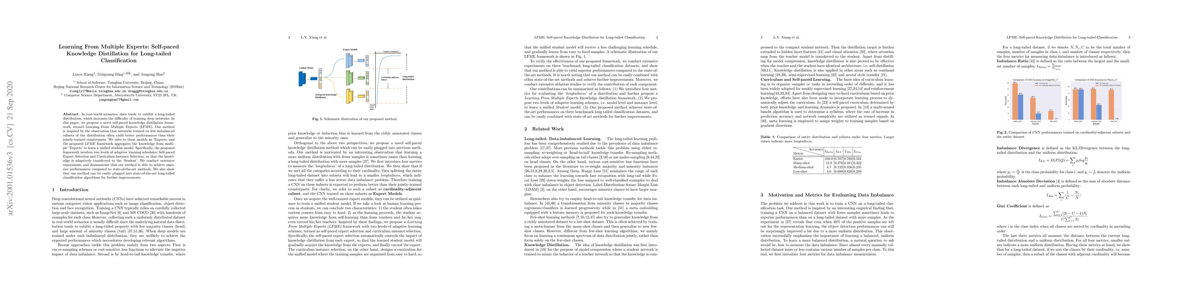 This paper introduces a self-paced knowledge distillation framework called Learning From Multiple Experts (LFME) to tackle long-tailed classification. It leverages 'Experts' trained on less imbalanced data subsets to distill knowledge into a unified 'Student' model through adaptive learning schedules, achieving superior performance compared to existing methods.