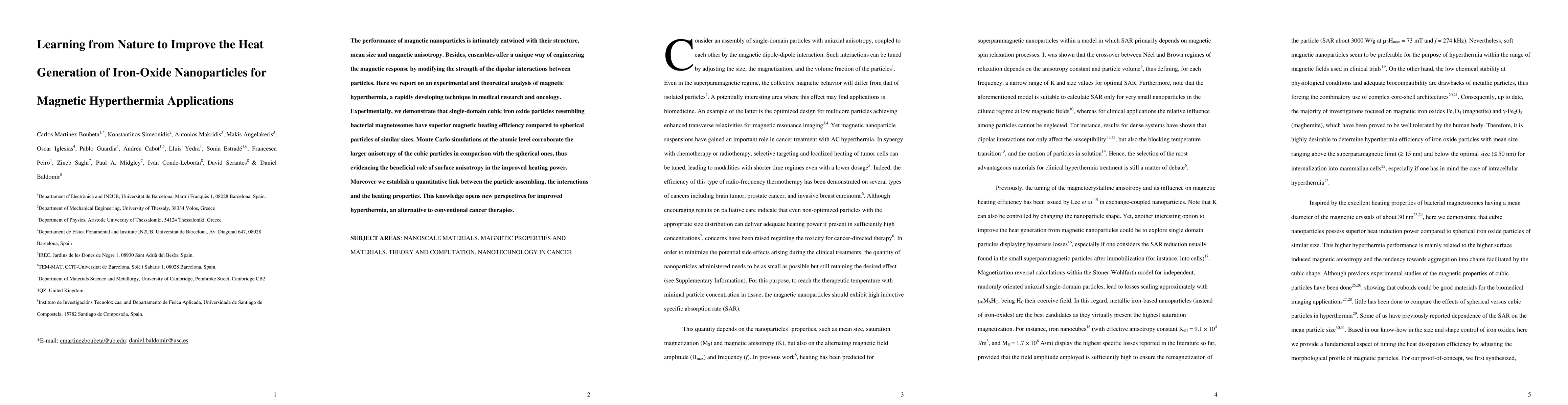 The paper presents an experimental and theoretical analysis of magnetic hyperthermia, demonstrating the superior heating efficiency of cubic iron oxide nanoparticles over spherical ones, and provides a quantitative link between particle properties and heating characteristics.