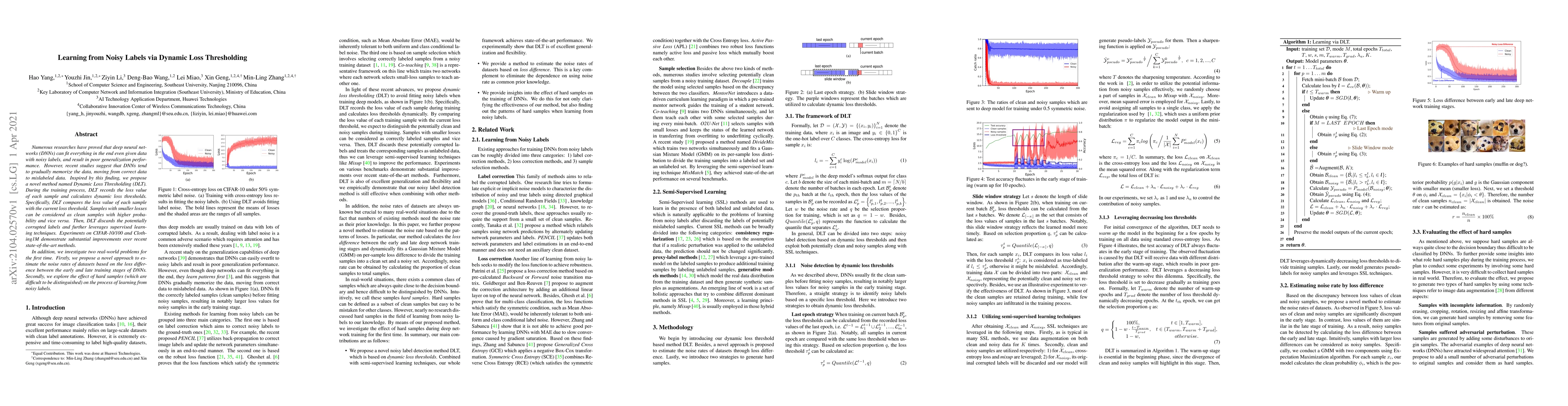 The paper proposes Dynamic Loss Thresholding (DLT) to improve deep neural networks' performance on datasets with noisy labels, by dynamically adjusting loss thresholds to identify and discard mislabeled samples. Experiments show significant improvements over existing methods, and the study also introduces novel approaches to estimate noise rates and analyze the impact of hard samples.