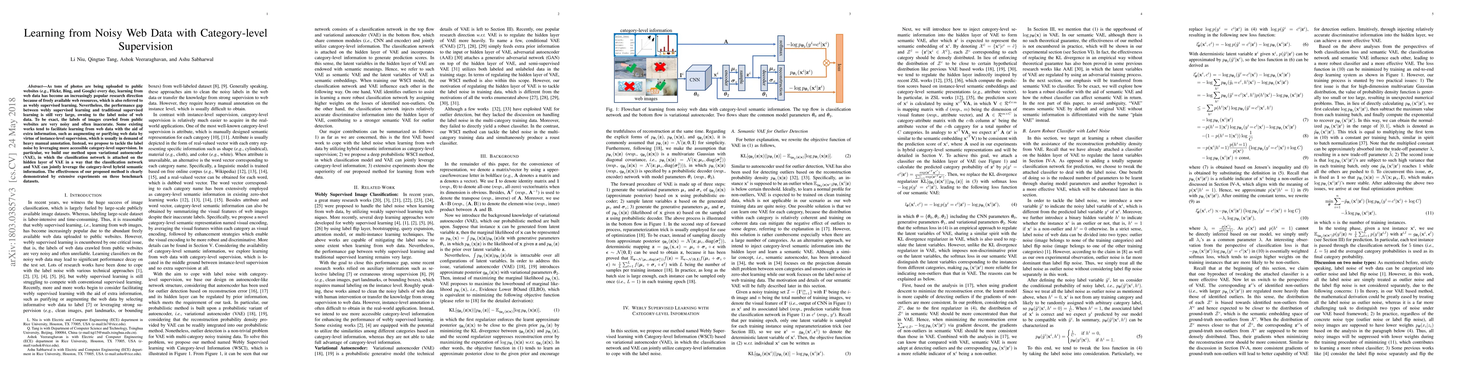This paper proposes a method to learn from noisy web data using category-level supervision, achieving better performance than traditional supervised learning methods. It uses a variational autoencoder (VAE) with a classification network attached to the hidden layer to leverage hybrid semantic information.