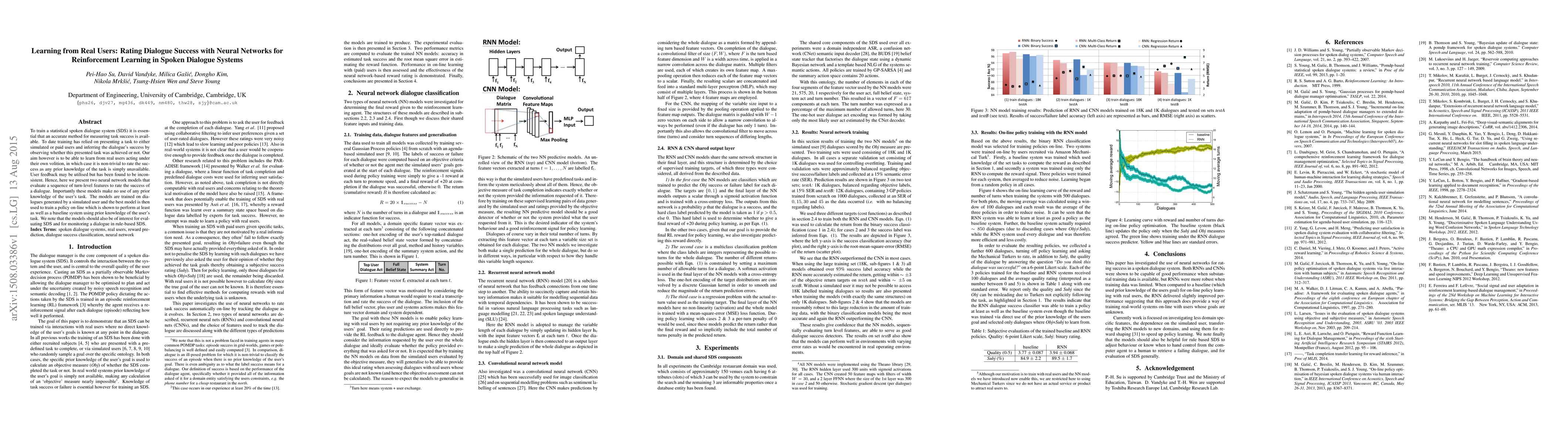 Researchers developed neural network models to rate dialogue success without prior knowledge of the task, outperforming a baseline system with user feedback.