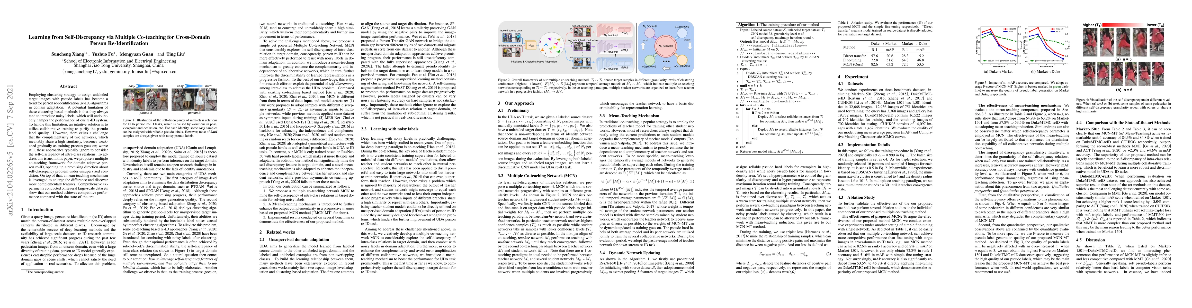 Employing clustering strategy to assign unlabeled target images with pseudo labels has become a trend for person re-identification (re-ID) algorithms in domain adaptation. A potential limitation of these clustering-based methods is that they always tend to introduce noisy labels, which will undoubtedly hamper the performance of our re-ID system. To handle this limitation, an intuitive solution is to utilize collaborative training to purify the pseudo label quality. However, there exists a challenge that the complementarity of two networks, which inevitably share a high similarity, becomes weakened gradually as training process goes on; worse still, these approaches typically ignore to consider the self-discrepancy of intra-class relations. To address this issue, in this paper, we propose a multiple co-teaching framework for domain adaptive person re-ID, opening up a promising direction about self-discrepancy problem under unsupervised condition. On top of that, a mean-teaching mechanism is leveraged to enlarge the difference and discover more complementary features. Comprehensive experiments conducted on several large-scale datasets show that our method achieves competitive performance compared with the state-of-the-arts.