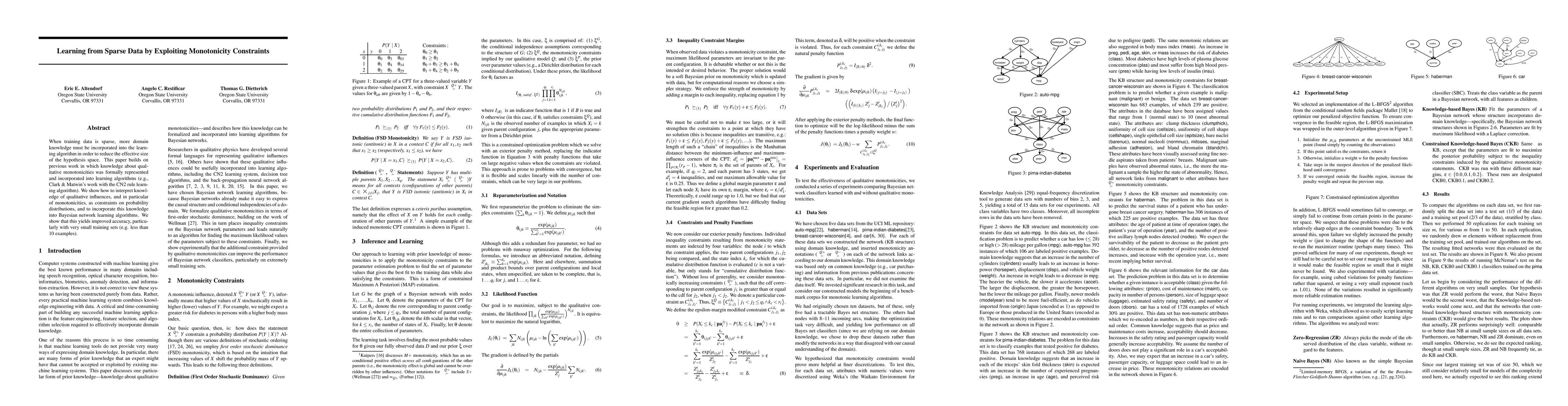 This paper improves learning accuracy with sparse data by incorporating qualitative monotonicity constraints into Bayesian network learning algorithms, leading to better performance on small training sets.