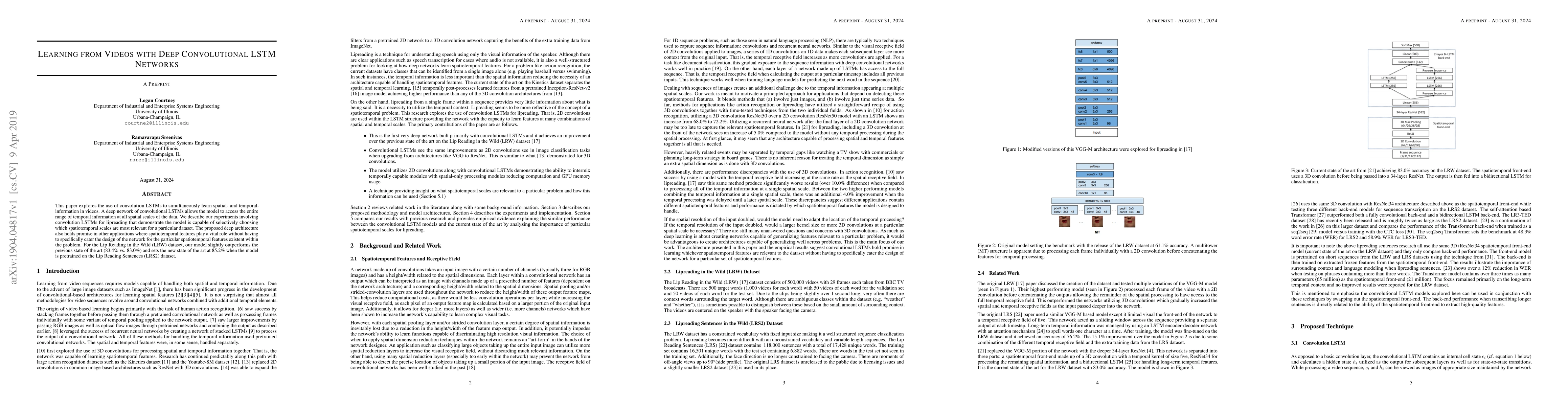 This paper explores the use of convolution LSTMs to simultaneously learn spatial- and temporal-information in videos. A deep network of convolutional LSTMs allows the model to access the entire range of temporal information at all spatial scales of the data. We describe our experiments involving convolution LSTMs for lipreading that demonstrate the model is capable of selectively choosing which spatiotemporal scales are most relevant for a particular dataset. The proposed deep architecture also holds promise in other applications where spatiotemporal features play a vital role without having to specifically cater the design of the network for the particular spatiotemporal features existent within the problem. For the Lip Reading in the Wild (LRW) dataset, our model slightly outperforms the previous state of the art (83.4% vs. 83.0%) and sets the new state of the art at 85.2% when the model is pretrained on the Lip Reading Sentences (LRS2) dataset.