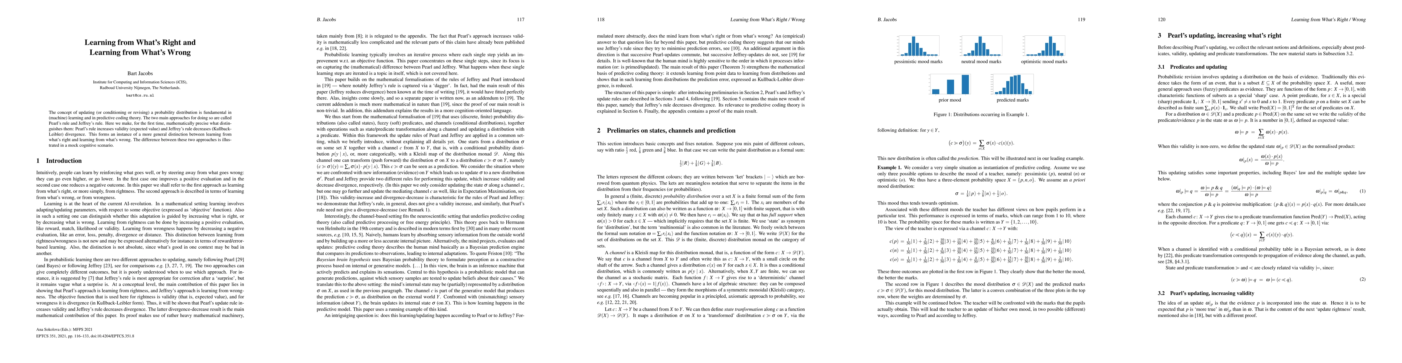 The concept of updating (or conditioning or revising) a probability distribution is fundamental in (machine) learning and in predictive coding theory. The two main approaches for doing so are called Pearl's rule and Jeffrey's rule. Here we make, for the first time, mathematically precise what distinguishes them: Pearl's rule increases validity (expected value) and Jeffrey's rule decreases (Kullback-Leibler) divergence. This forms an instance of a more general distinction between learning from what's right and learning from what's wrong. The difference between these two approaches is illustrated in a mock cognitive scenario.