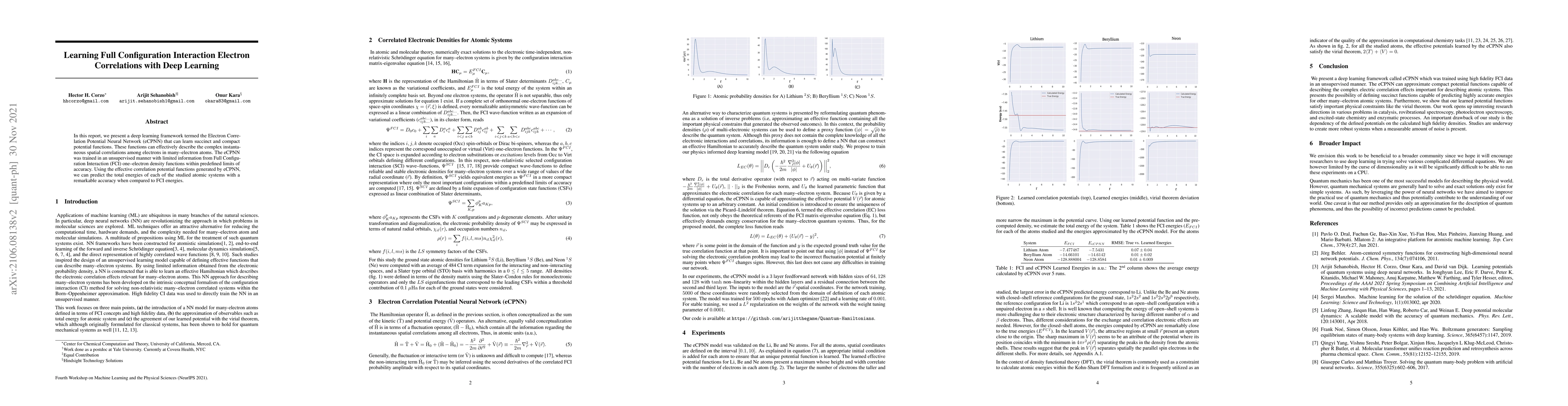The research introduces a novel deep learning method (eCPNN) that learns compact potential functions to describe complex electron correlation effects in many-electron atomic systems, outperforming existing methods in terms of accuracy and efficiency.