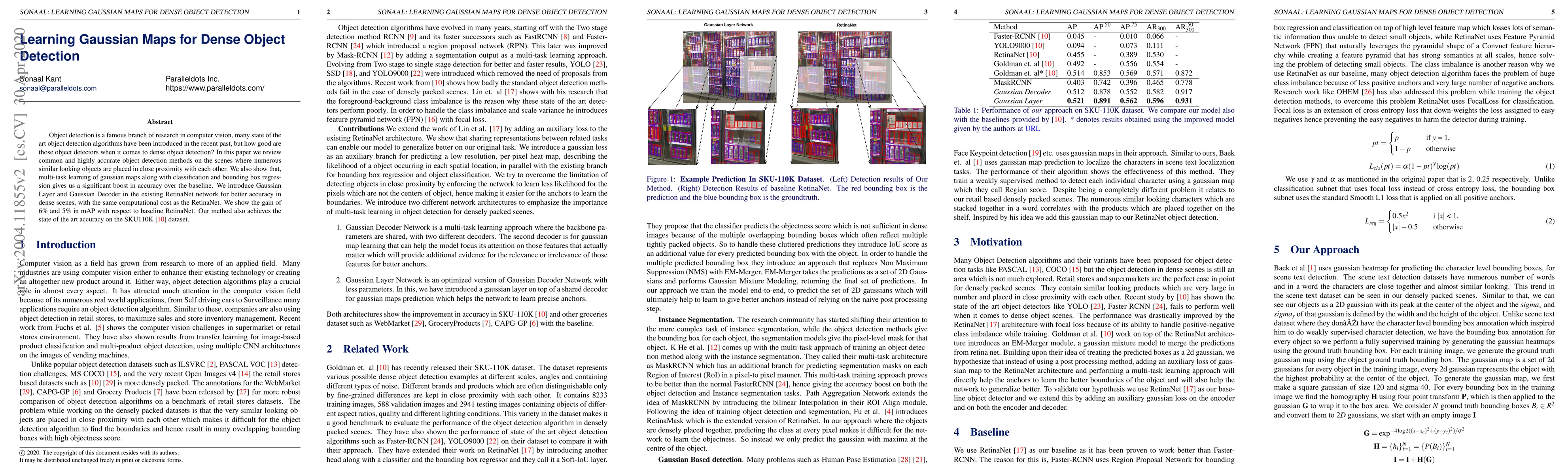 This paper improves object detection accuracy in dense scenes by introducing a Gaussian Layer and Decoder to RetinaNet, achieving state-of-the-art results with a 6% and 5% boost in mAP.