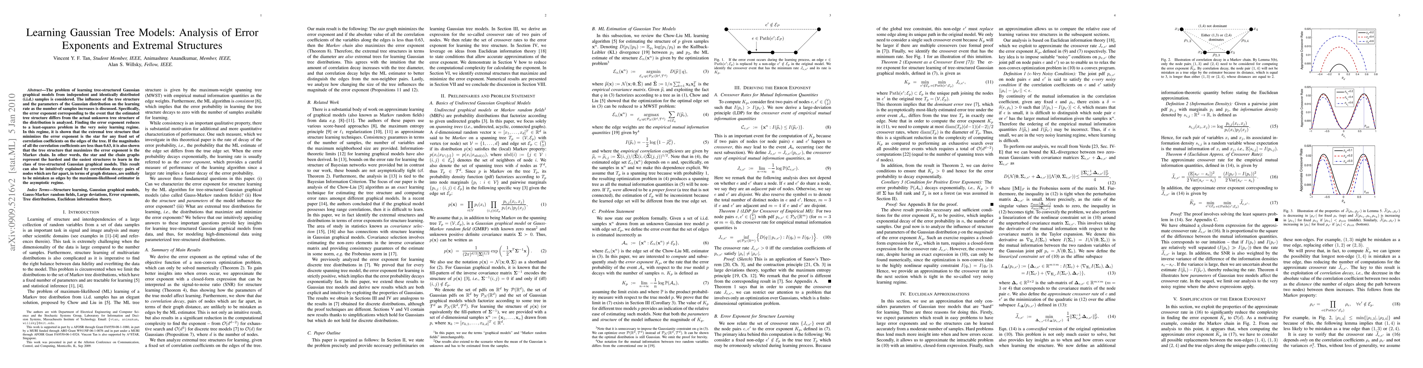 This paper investigates the learning of tree-structured Gaussian graphical models, focusing on error exponents and extremal tree structures. It finds that the star graph minimizes error in noisy conditions, while the Markov chain maximizes it when correlation coefficients are below 0.63, highlighting these as the hardest and easiest structures to learn respectively.