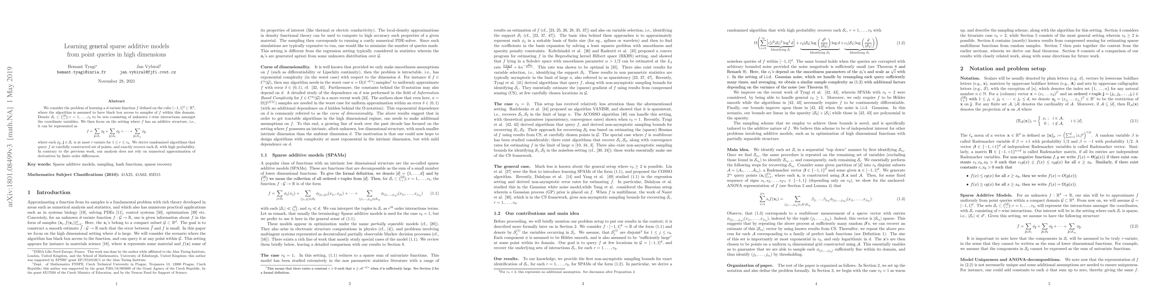 Researchers develop algorithms to learn sparse additive models from point queries in high dimensions without relying on derivative approximations, enabling exact recovery of interactions with high probability.