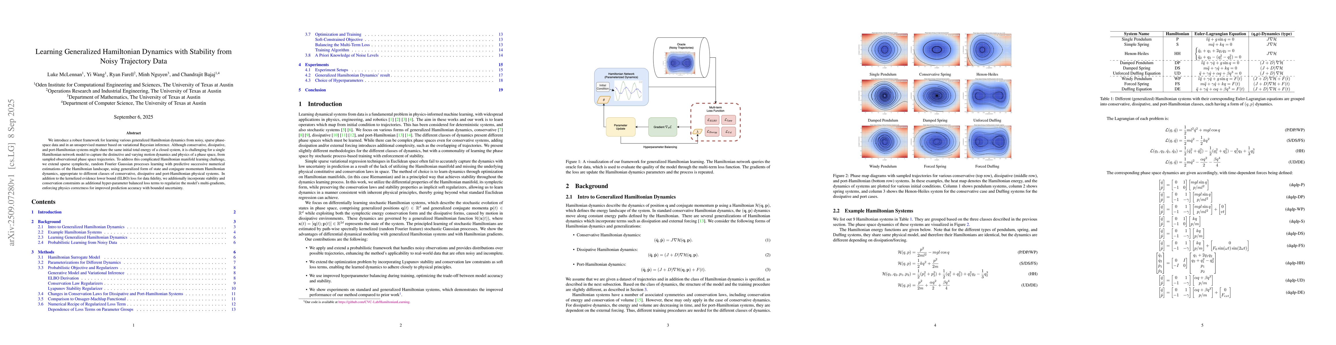 We introduce a robust framework for learning various generalized Hamiltonian dynamics from noisy, sparse phase-space data and in an unsupervised manner based on variational Bayesian inference. Although conservative, dissipative, and port-Hamiltonian systems might share the same initial total energy of a closed system, it is challenging for a single Hamiltonian network model to capture the distinctive and varying motion dynamics and physics of a phase space, from sampled observational phase space trajectories. To address this complicated Hamiltonian manifold learning challenge, we extend sparse symplectic, random Fourier Gaussian processes learning with predictive successive numerical estimations of the Hamiltonian landscape, using a generalized form of state and conjugate momentum Hamiltonian dynamics, appropriate to different classes of conservative, dissipative and port-Hamiltonian physical systems. In addition to the kernelized evidence lower bound (ELBO) loss for data fidelity, we incorporate stability and conservation constraints as additional hyper-parameter balanced loss terms to regularize the model's multi-gradients, enforcing physics correctness for improved prediction accuracy with bounded uncertainty.