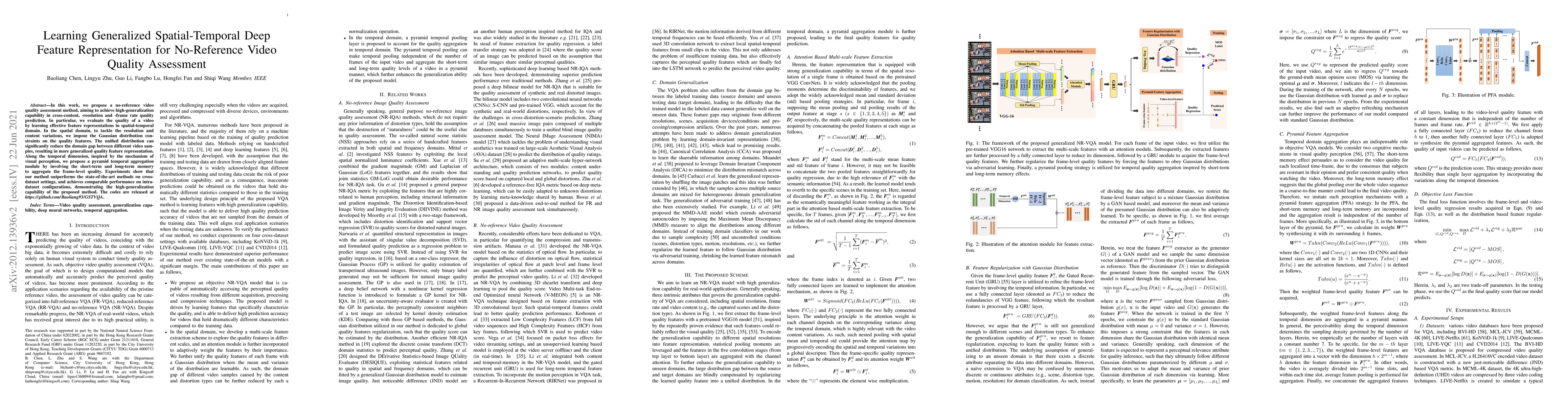 This paper proposes a no-reference video quality assessment method that leverages spatial-temporal deep feature representations to generalize across different video contents, resolutions, and frame rates. The method employs Gaussian distribution constraints in the spatial domain and a pyramid temporal aggregation module to achieve high-generalization performance, outperforming state-of-the-art methods on cross-dataset evaluations.
