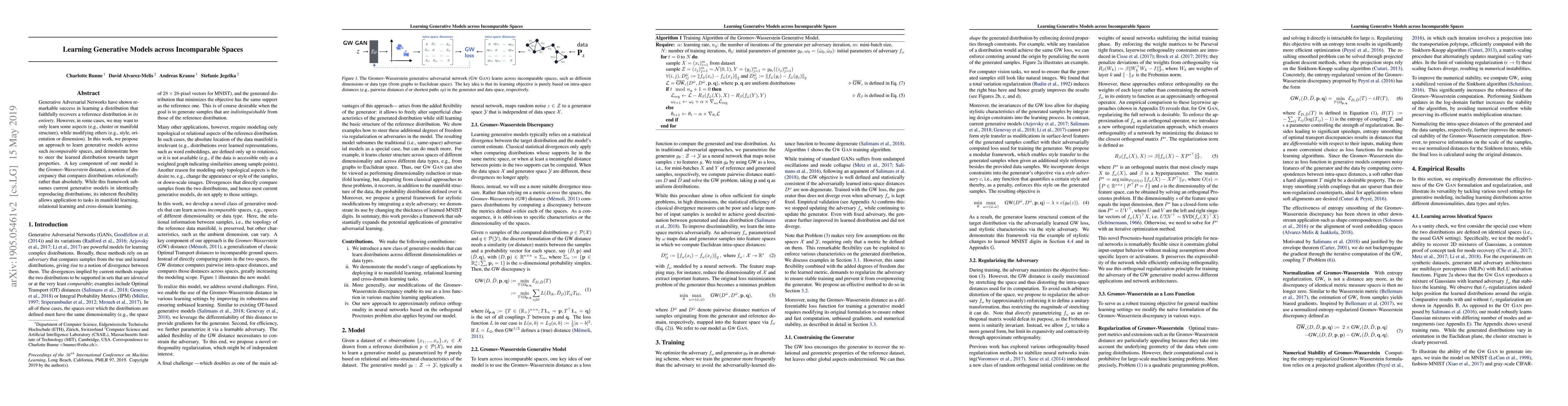 This paper proposes a generative model framework using the Gromov-Wasserstein distance to learn and manipulate distributions across incomparable spaces, enabling selective learning of specific features while modifying others. This approach extends beyond traditional generative models to support manifold, relational, and cross-domain learning.