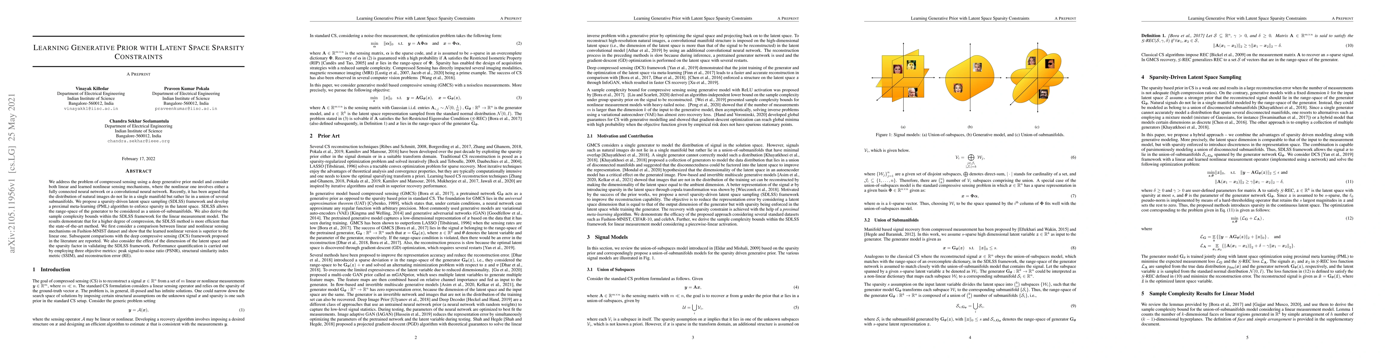 We address the problem of compressed sensing using a deep generative prior model and consider both linear and learned nonlinear sensing mechanisms, where the nonlinear one involves either a fully connected neural network or a convolutional neural network. Recently, it has been argued that the distribution of natural images do not lie in a single manifold but rather lie in a union of several submanifolds. We propose a sparsity-driven latent space sampling (SDLSS) framework and develop a proximal meta-learning (PML) algorithm to enforce sparsity in the latent space. SDLSS allows the range-space of the generator to be considered as a union-of-submanifolds. We also derive the sample complexity bounds within the SDLSS framework for the linear measurement model. The results demonstrate that for a higher degree of compression, the SDLSS method is more efficient than the state-of-the-art method. We first consider a comparison between linear and nonlinear sensing mechanisms on Fashion-MNIST dataset and show that the learned nonlinear version is superior to the linear one. Subsequent comparisons with the deep compressive sensing (DCS) framework proposed in the literature are reported. We also consider the effect of the dimension of the latent space and the sparsity factor in validating the SDLSS framework. Performance quantification is carried out by employing three objective metrics: peak signal-to-noise ratio (PSNR), structural similarity index metric (SSIM), and reconstruction error (RE).