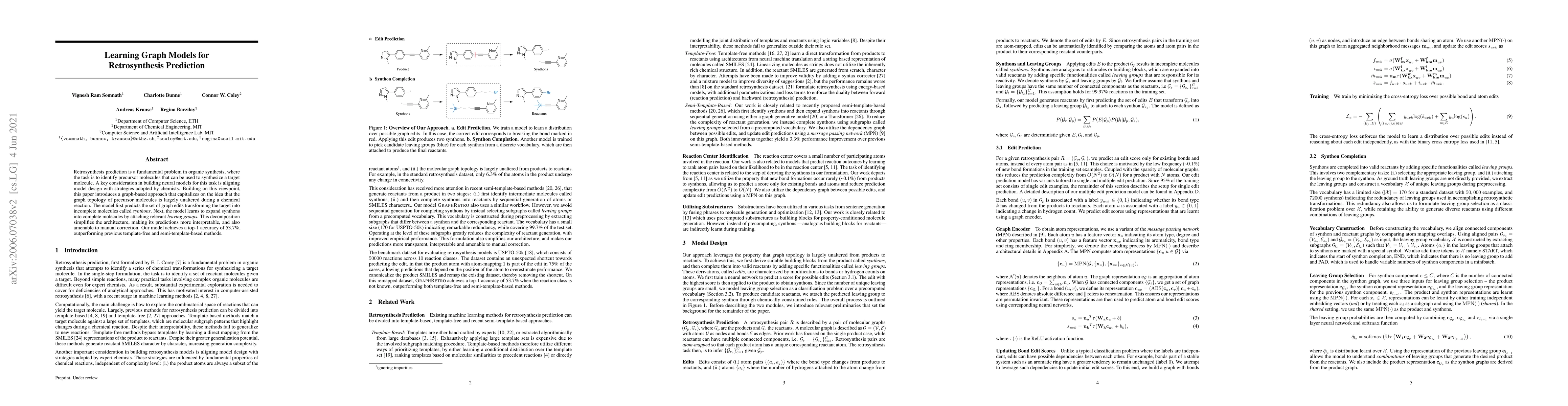 This paper proposes a graph-based neural model for retrosynthesis prediction, decomposing the synthesis process into graph edits transforming targets into synthons and then expanding synthons into complete molecules. The model achieves a top-1 accuracy of 53.7%, outperforming previous methods.