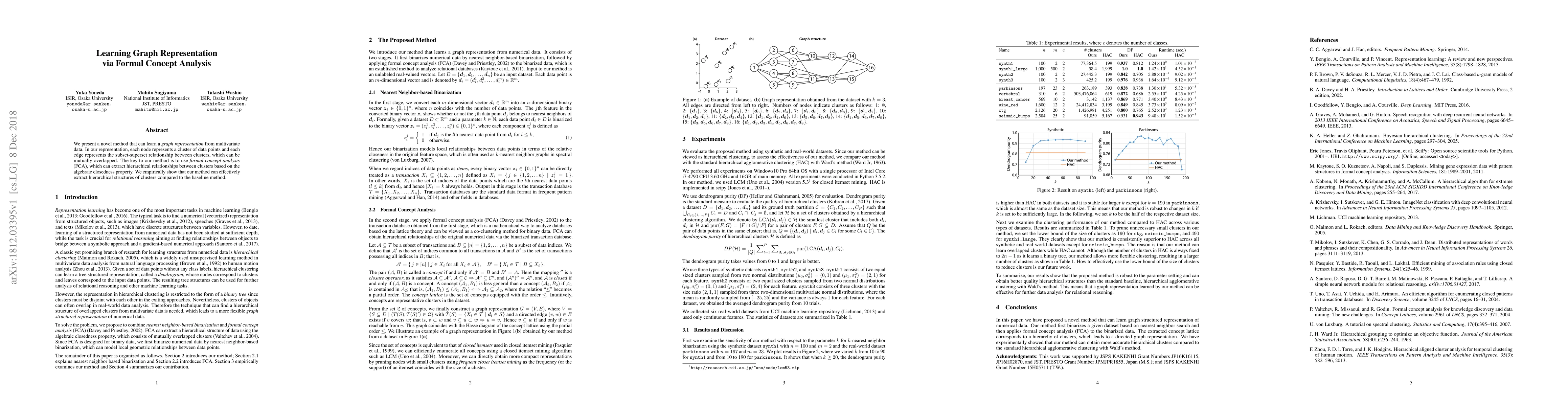 This paper introduces a new method for learning graph representations from multivariate data using formal concept analysis, which can extract hierarchical cluster structures with overlapping clusters. The method outperforms baseline methods in extracting hierarchical structures of clusters.