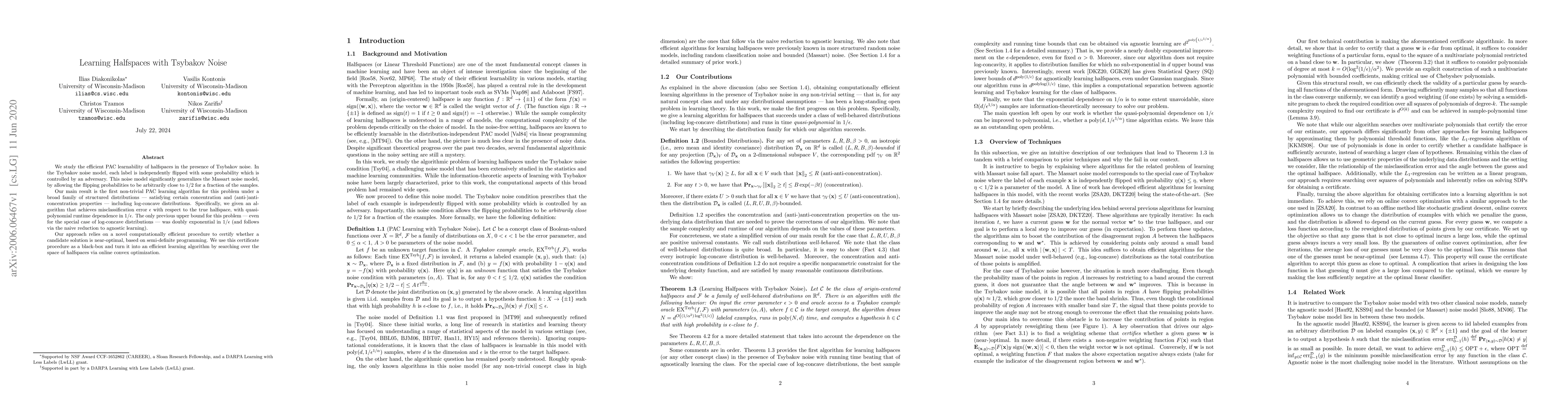 This paper presents a novel PAC learning algorithm for halfspaces under Tsybakov noise, achieving quasi-polynomial runtime for $\epsilon$-misclassification, significantly improving upon the previous doubly exponential bound. The approach leverages a semi-definite programming certificate and online convex optimization.