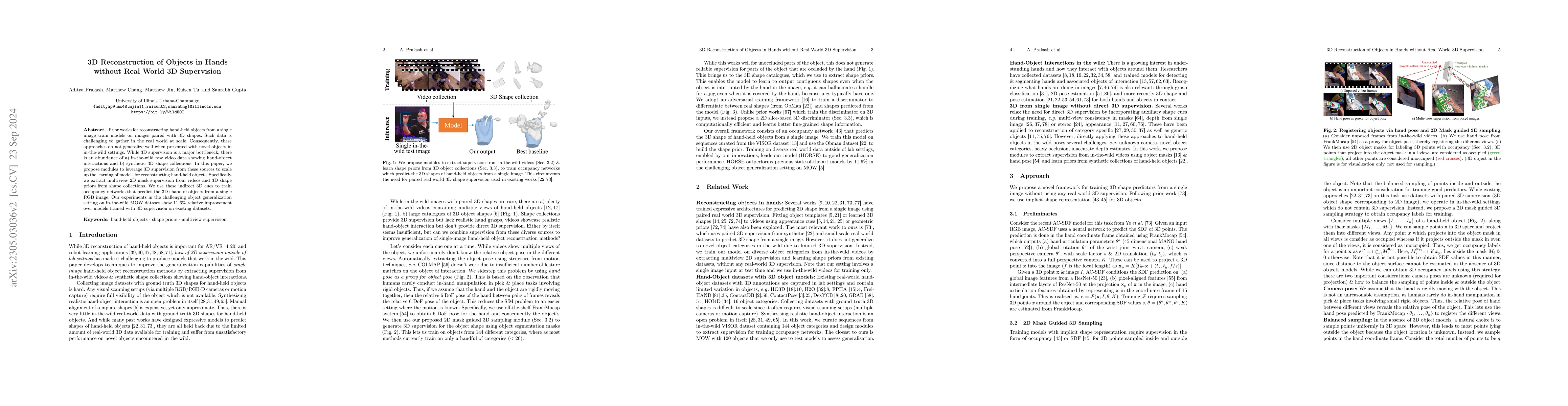 This paper proposes a method to reconstruct hand-held objects from in-the-wild videos by extracting 3D supervision from raw video data, addressing challenges like unknown camera pose and occlusion. It trains occupancy networks using indirect 3D cues to predict 3D shapes from single RGB images, demonstrating effectiveness on MOW and HO3D datasets.