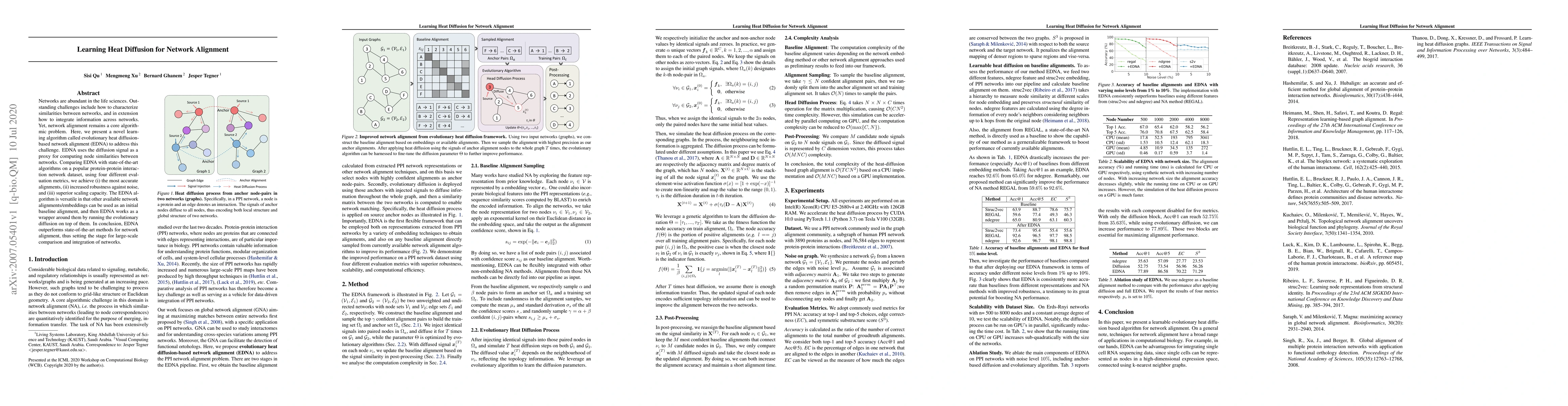 The paper introduces EDNA, a novel learning algorithm for network alignment that leverages heat diffusion to compute node similarities, achieving superior accuracy, robustness, and scalability compared to existing methods. EDNA can enhance initial alignments and is versatile for integrating information across various networks.