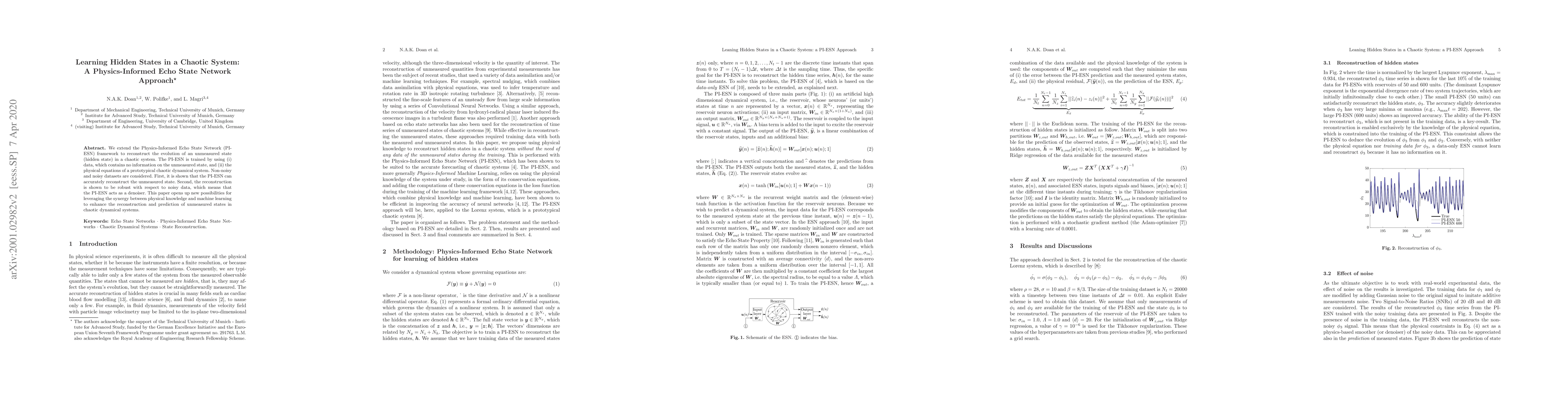 This paper proposes a Physics-Informed Echo State Network (PI-ESN) to reconstruct hidden states in chaotic systems, utilizing both physical equations and data. The PI-ESN demonstrates accurate and robust reconstruction even in noisy conditions, highlighting the potential of combining physical knowledge with machine learning for dynamical systems.