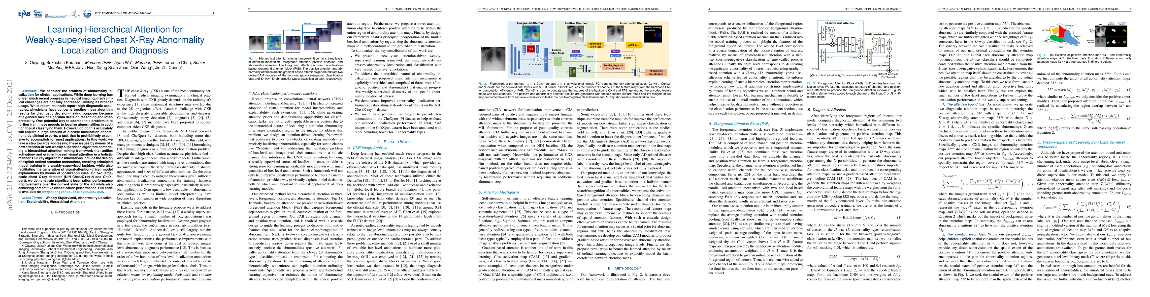 This paper proposes a hierarchical attention-driven weakly-supervised algorithm for localizing abnormalities in chest X-rays, addressing the lack of interpretability in deep learning models used in medical imaging. The method introduces ordinal attention constraints to improve localization without extensive expert annotations, achieving better localization and competitive classification performance on two large datasets.