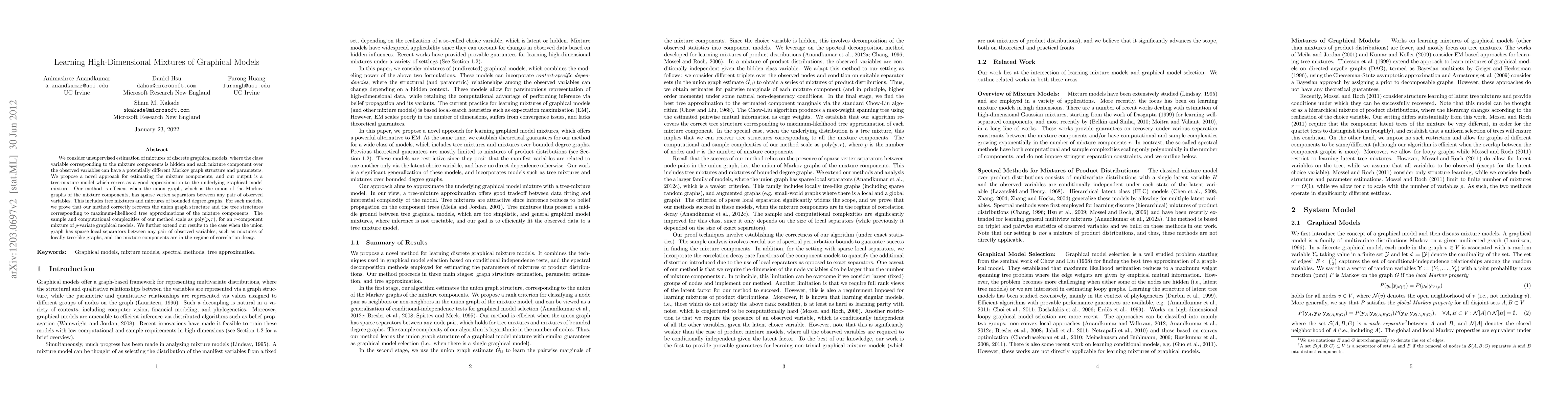 This paper proposes a method for estimating mixtures of high-dimensional discrete graphical models, where each component has a unique Markov graph structure. The approach efficiently recovers the union graph and tree structures under sparsity conditions, with polynomial sample and computational complexity.