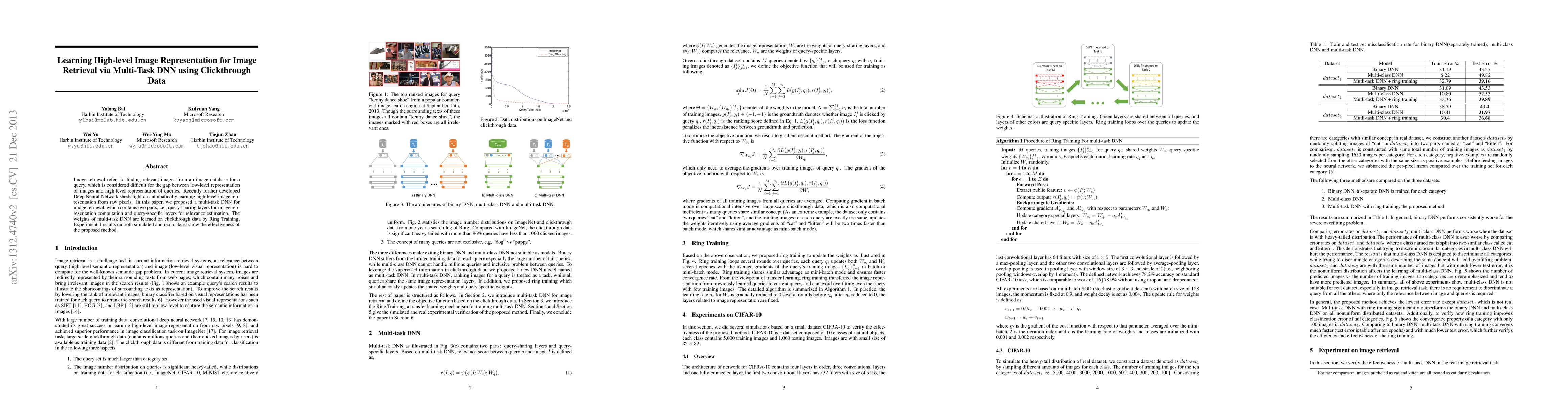 Image retrieval refers to finding relevant images from an image database for a query, which is considered difficult for the gap between low-level representation of images and high-level representation of queries. Recently further developed Deep Neural Network sheds light on automatically learning high-level image representation from raw pixels. In this paper, we proposed a multi-task DNN learned for image retrieval, which contains two parts, i.e., query-sharing layers for image representation computation and query-specific layers for relevance estimation. The weights of multi-task DNN are learned on clickthrough data by Ring Training. Experimental results on both simulated and real dataset show the effectiveness of the proposed method.