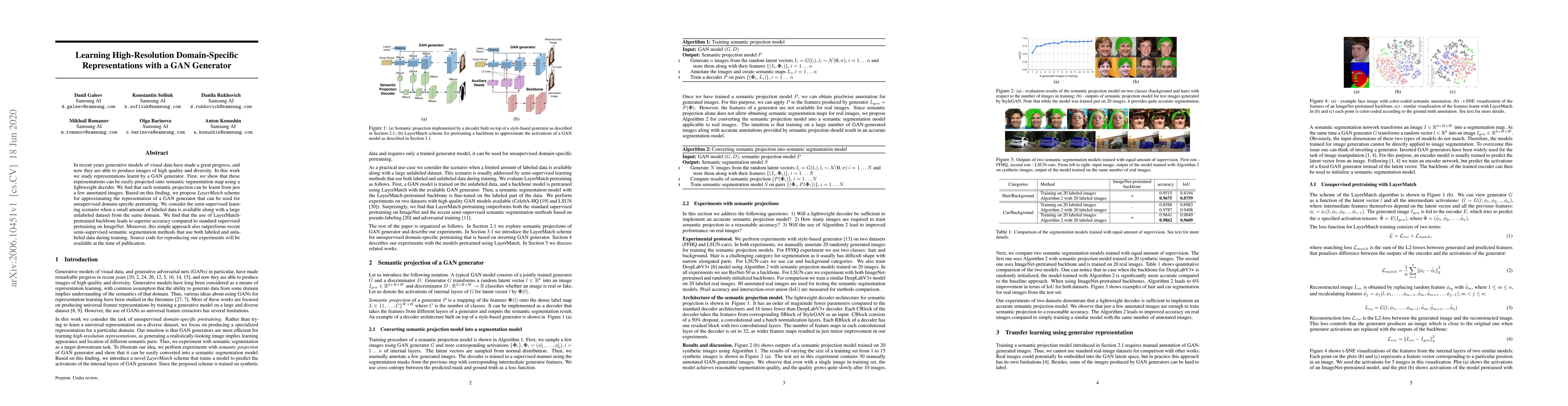 This paper explores high-resolution domain-specific representations learned by a GAN generator, demonstrating that these representations can be projected onto semantic segmentation maps using a lightweight decoder. It introduces LayerMatch for unsupervised domain-specific pretraining, showing superior performance in semi-supervised learning scenarios compared to standard ImageNet pretraining.