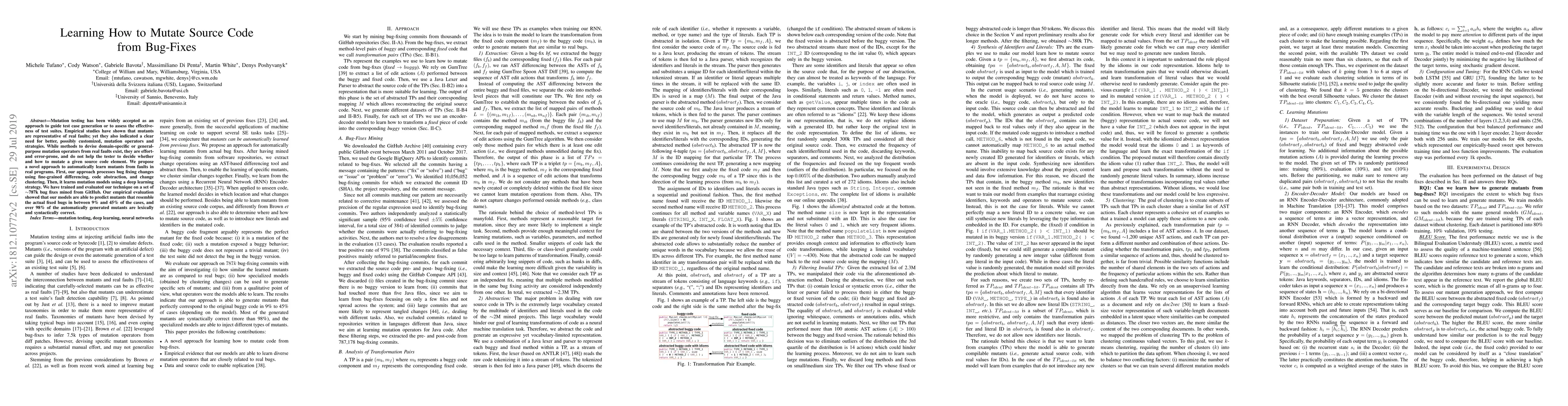This paper proposes a novel method to automatically learn mutation operators from real bug fixes using deep learning. The approach processes bug fixes to identify patterns and trains models to predict mutants, achieving between 9% and 45% accuracy in predicting mutants similar to actual bugs, with over 98% of generated mutants being syntactically correct.