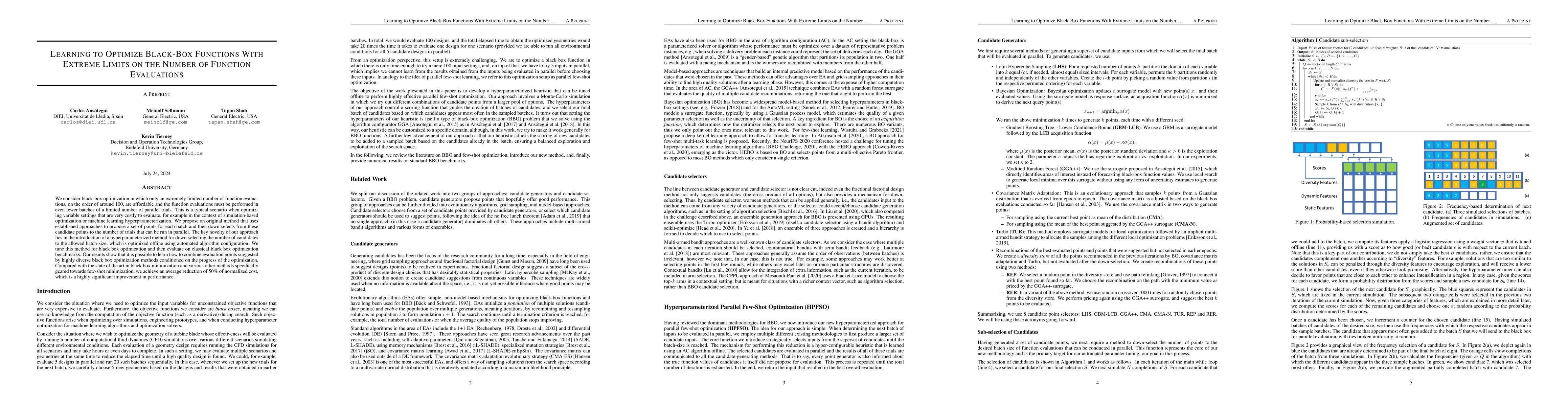 This research introduces a novel method for optimizing black-box functions under extreme limits on the number of evaluations, typically encountered in costly simulations or hyperparameter tuning. The approach combines diverse optimization methods, selects candidates for each batch, and optimizes offline a down-selection method using automated algorithm configuration. Results indicate a significant 50% average reduction in normalized cost compared to existing methods, demonstrating improved performance in few-shot minimization scenarios.