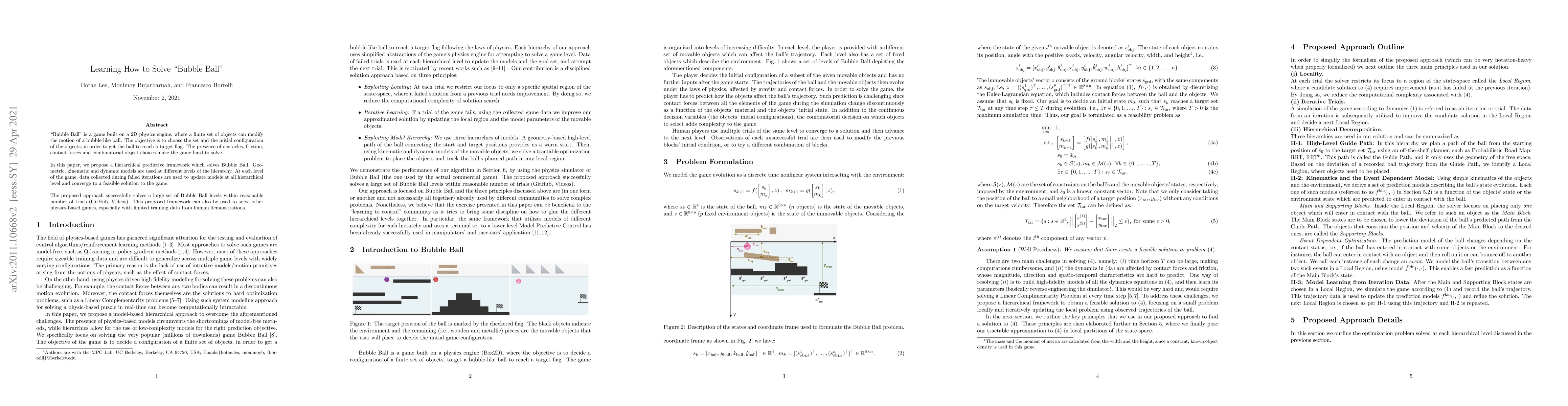Researchers develop a hierarchical predictive framework to solve Bubble Ball, a physics-based game, using geometric, kinematic, and dynamic models that adapt with failed iterations. The approach successfully solves levels within reasonable trials, showing potential for solving other games with limited training data.