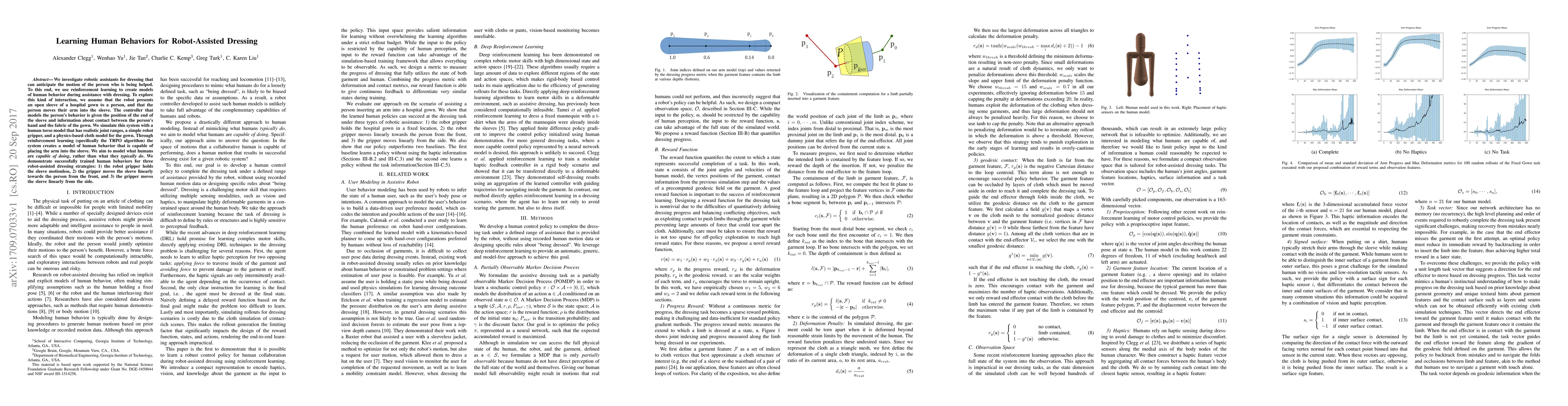 This paper explores robotic assistants for dressing using reinforcement learning to model human behaviors, focusing on arm movement into a sleeve. The system simulates realistic interactions and trains models capable of various dressing strategies, aiming to model human potential rather than typical behavior.
