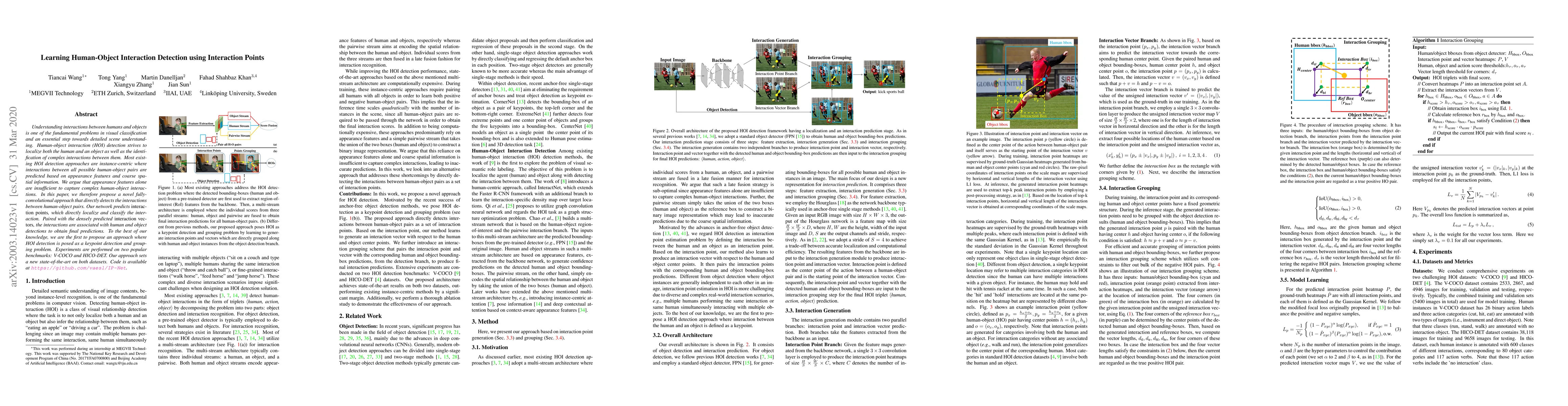 This paper proposes a novel fully-convolutional network for detecting human-object interactions by directly predicting interaction points, treating HOI detection as a keypoint detection and grouping problem. The approach outperforms existing methods on V-COCO and HICO-DET benchmarks, setting a new state-of-the-art.