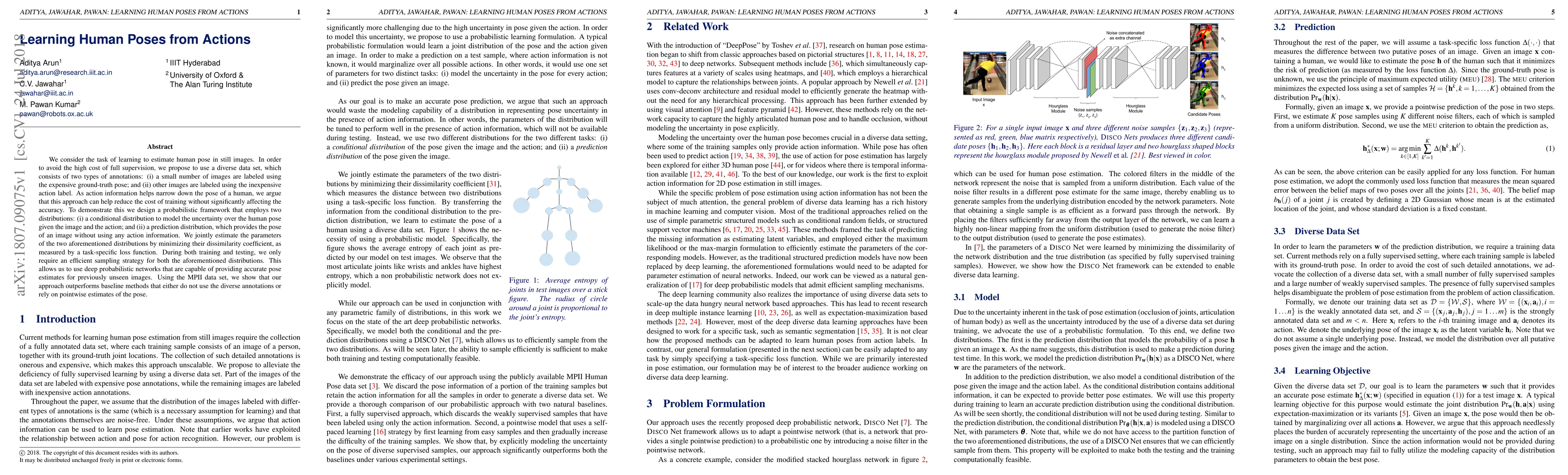 This research proposes a method to estimate human poses in images using a mix of expensive ground-truth labels and inexpensive action labels. A probabilistic framework is designed, modeling pose uncertainty given images and actions, and providing pose estimates without action info. The approach outperforms baselines on the MPII dataset, demonstrating cost-effective and accurate human pose estimation.