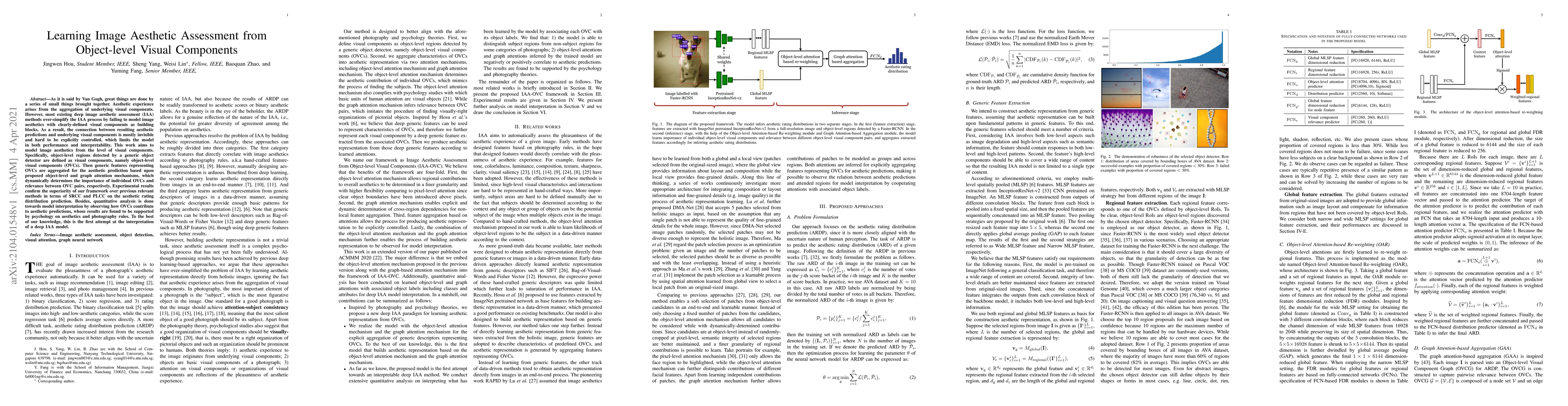 This paper proposes a novel method for assessing image aesthetics by modeling it from object-level visual components, using object-level and graph attention mechanisms to dynamically weigh the importance of individual components and their relevance. The approach demonstrates superior performance and interpretability compared to previous methods.