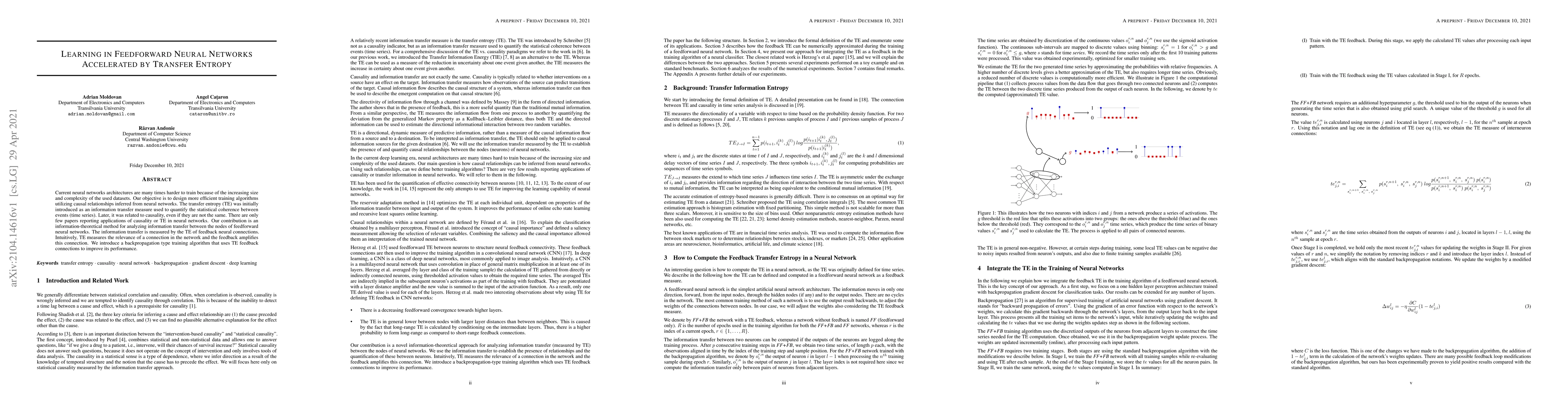 This paper proposes an information-theoretical method to analyze information transfer in feedforward neural networks using transfer entropy (TE) to quantify the relevance of feedback connections. The study introduces a novel training algorithm that leverages TE to enhance the efficiency of neural network training.