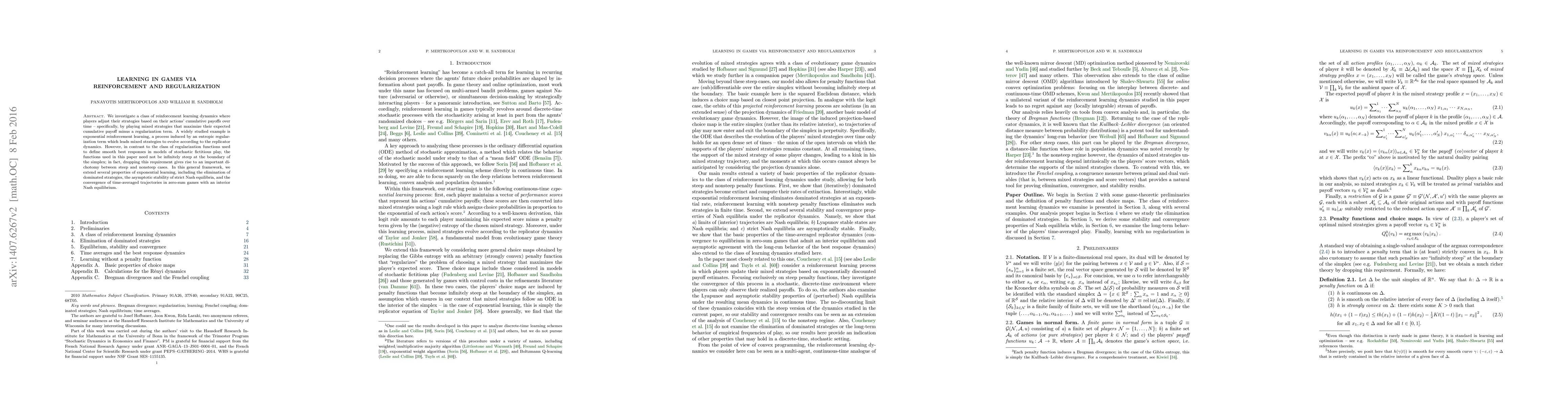 This paper explores reinforcement learning dynamics where players optimize their strategies based on cumulative payoffs, incorporating a regularization term. It highlights a dichotomy between steep and nonsteep regularization functions, extending properties of exponential learning to this broader framework, including strategy elimination and convergence to Nash equilibria.