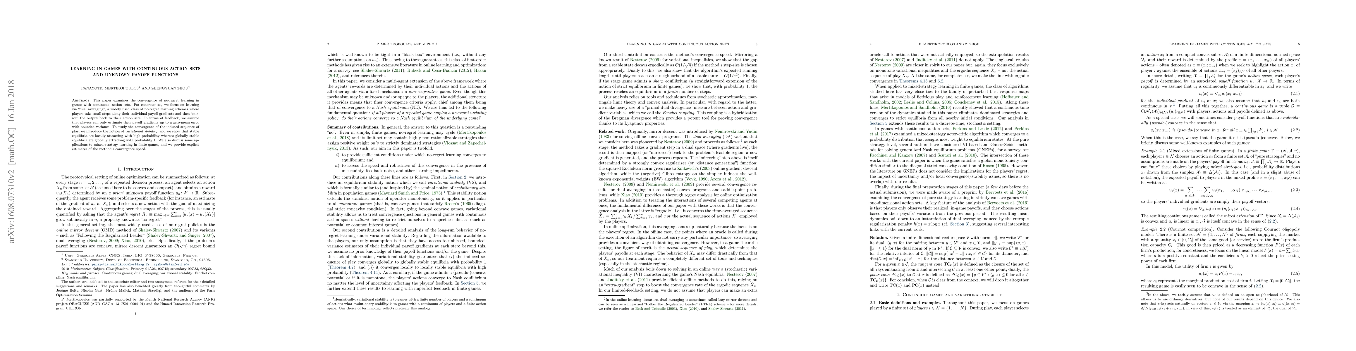 Researchers studied how no-regret learning algorithms perform in games where players take continuous actions with unknown payoffs, finding that stable equilibria attract players with high probability, while globally stable equilibria attract them with certainty.