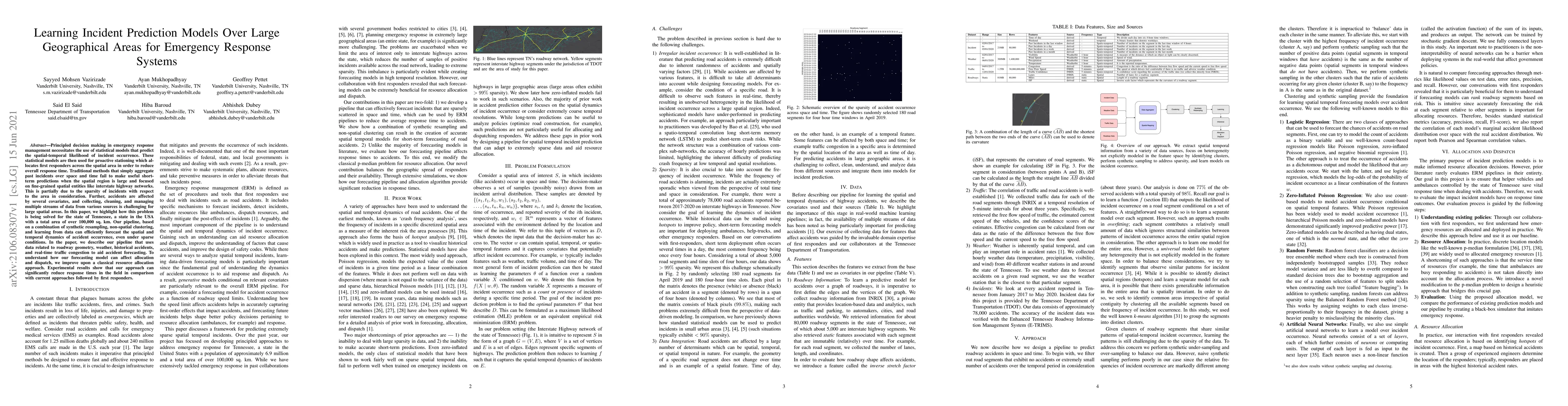 This paper develops a predictive model for incident occurrence in large geographical areas, specifically Tennessee, using a combination of synthetic resampling, non-spatial clustering, and learning from diverse data sources. The proposed method significantly reduces emergency response times compared to traditional aggregation methods.