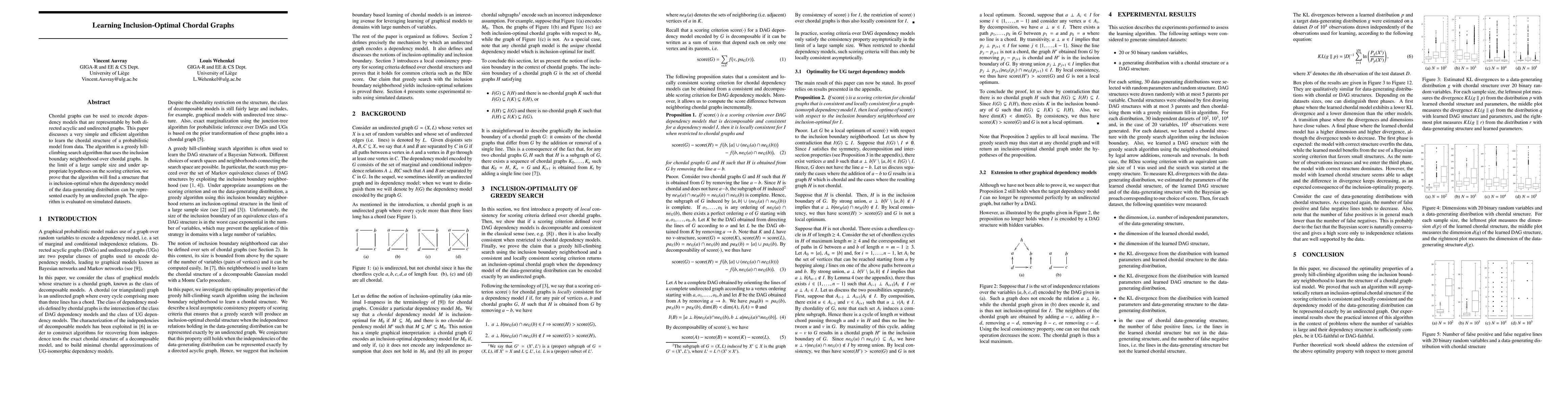 The paper presents a greedy hill-climbing search algorithm using the inclusion boundary neighborhood to learn the structure of chordal graphical models.