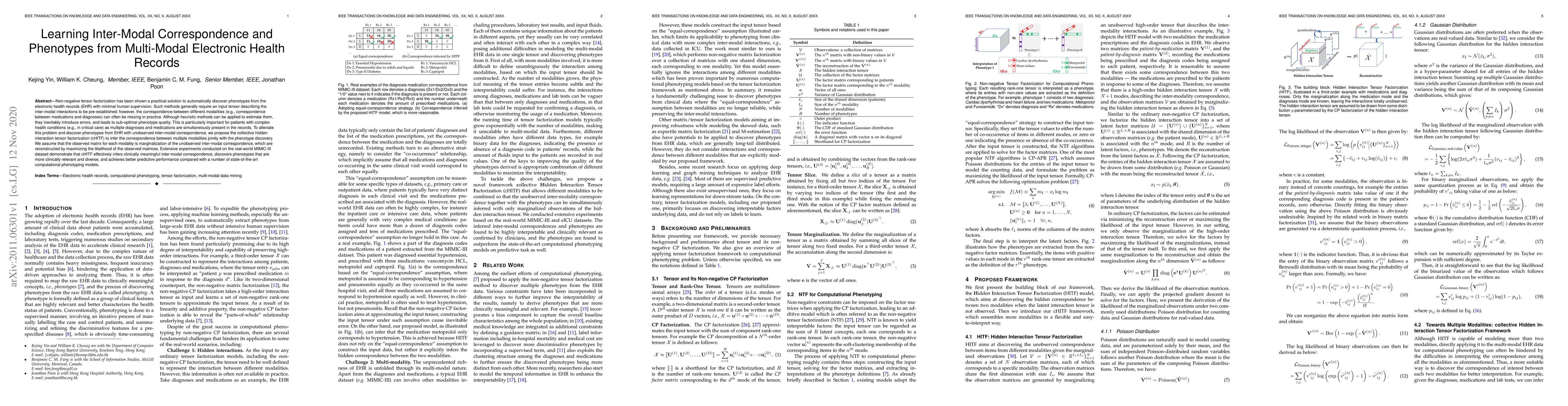 This paper proposes collective hidden interaction tensor factorization (cHITF) to infer inter-modal correspondences in multi-modal electronic health records (EHR) and discover phenotypes without pre-established correspondences. Experiments on MIMIC-III data show that cHITF improves phenotype discovery and predictive performance over existing methods.