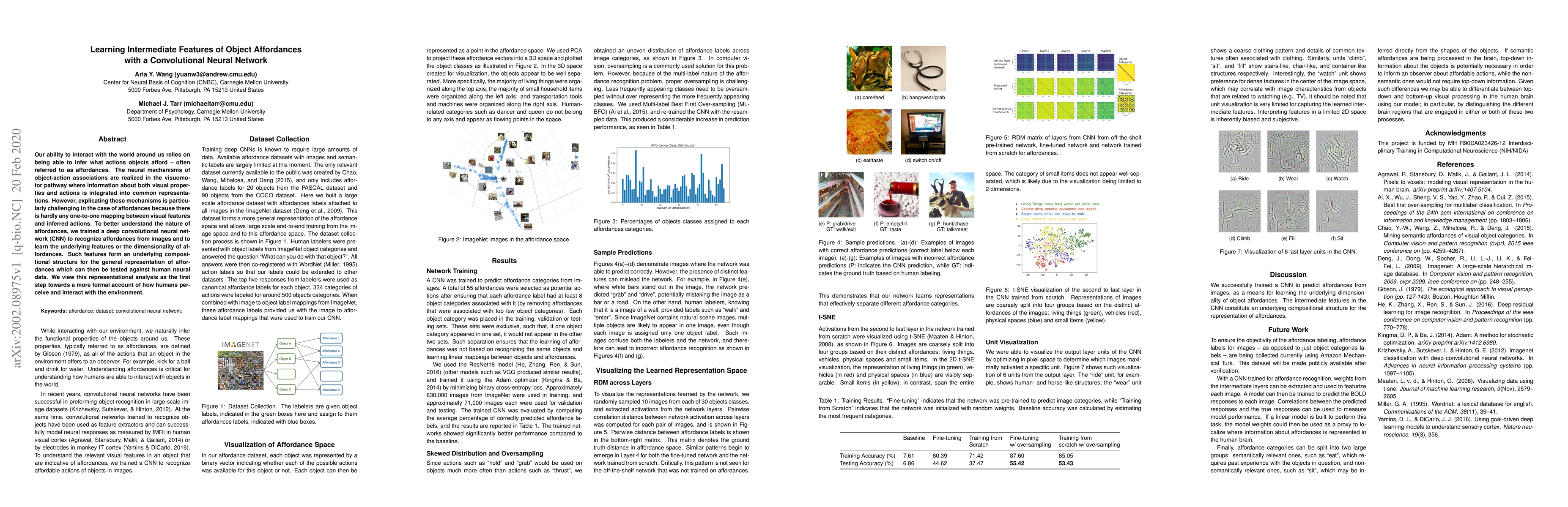 Researchers trained a deep neural network to recognize object affordances from images and identified intermediate features that describe the relationships between objects and actions. This study aims to better understand how humans perceive and interact with their environment.