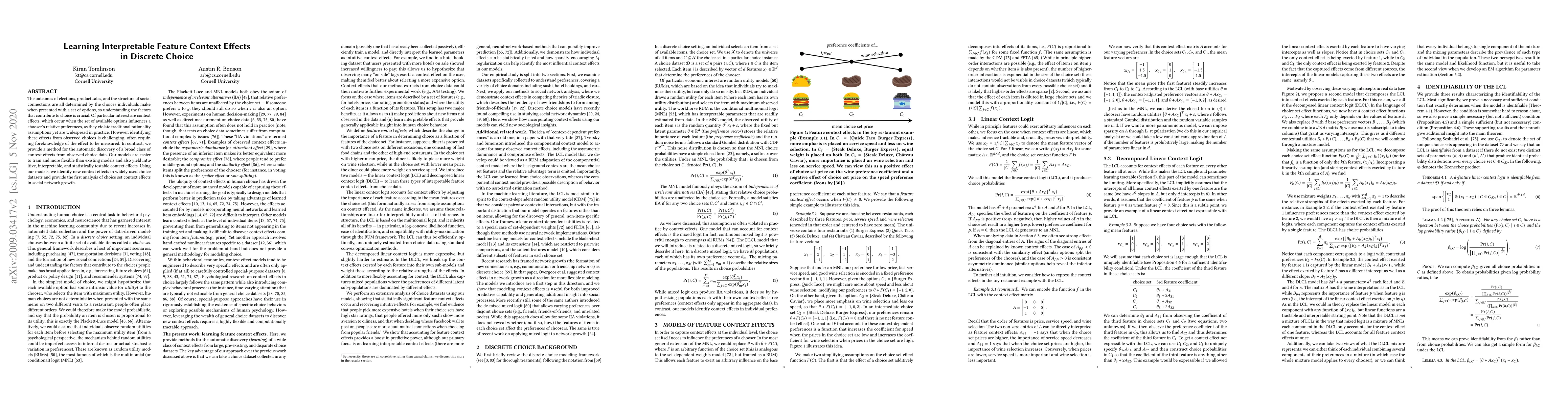 The outcomes of elections, product sales, and the structure of social connections are all determined by the choices individuals make when presented with a set of options, so understanding the factors that contribute to choice is crucial. Of particular interest are context effects, which occur when the set of available options influences a chooser's relative preferences, as they violate traditional rationality assumptions yet are widespread in practice. However, identifying these effects from observed choices is challenging, often requiring foreknowledge of the effect to be measured. In contrast, we provide a method for the automatic discovery of a broad class of context effects from observed choice data. Our models are easier to train and more flexible than existing models and also yield intuitive, interpretable, and statistically testable context effects. Using our models, we identify new context effects in widely used choice datasets and provide the first analysis of choice set context effects in social network growth.