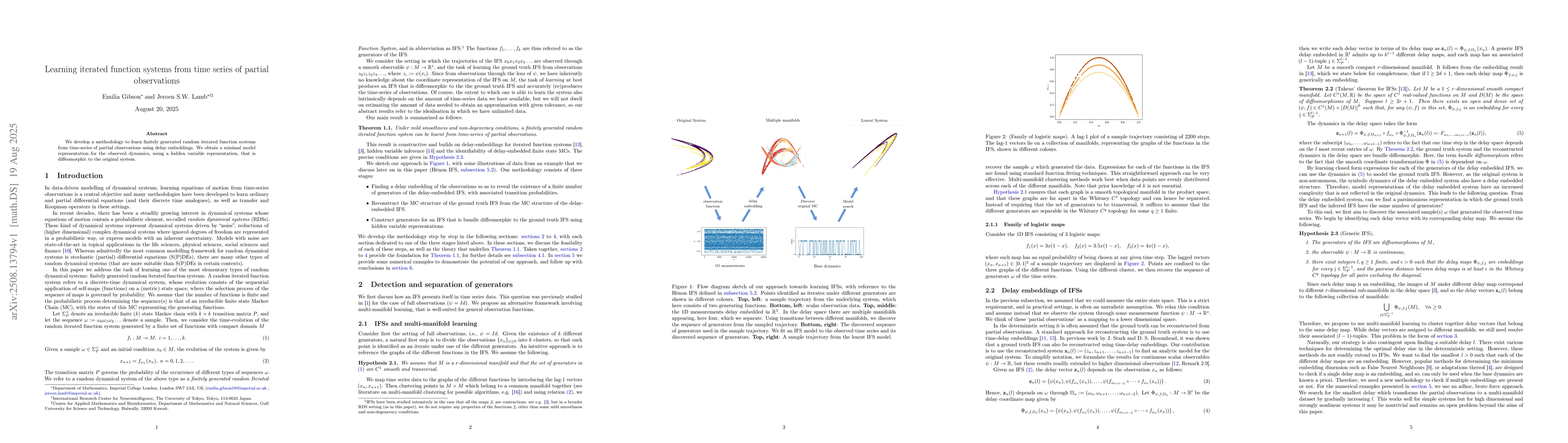 The paper presents a novel methodology that combines time-delay embeddings, manifold learning, directed graphs, and Markov chains for learning IFSs from partial observations.