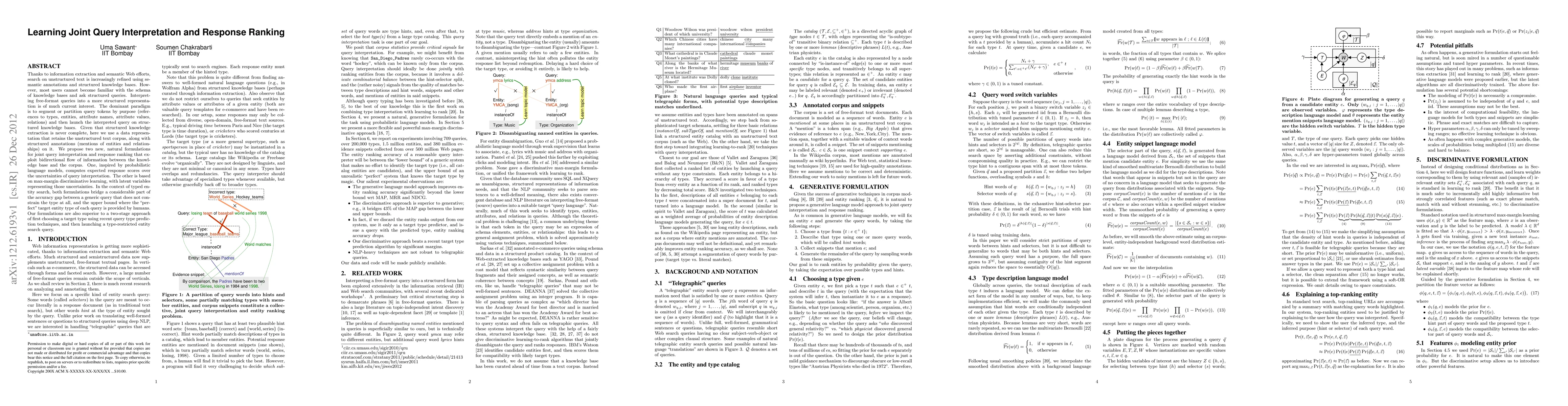 Researchers propose two new methods for joint query interpretation and response ranking, improving accuracy in typed entity search and surpassing existing approaches.