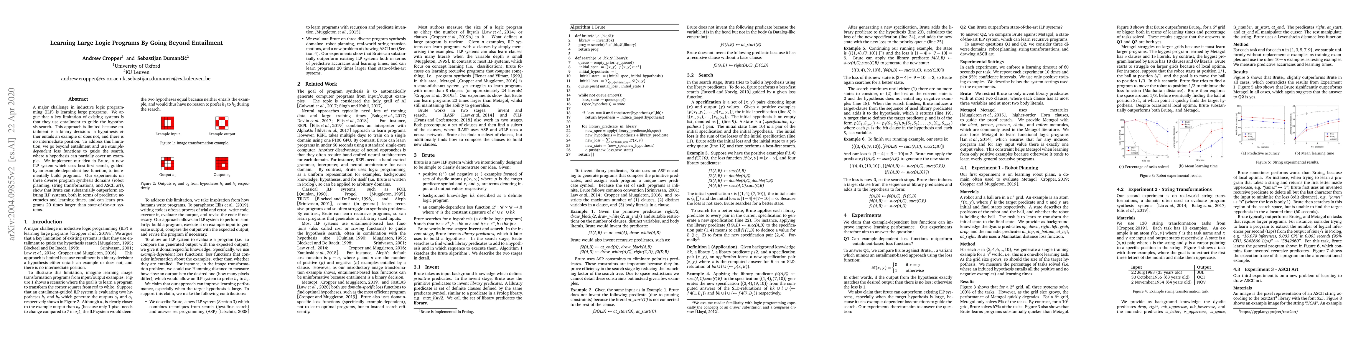 A new ILP system called Brute learns large logic programs more efficiently than existing systems by using example-dependent loss functions that allow hypotheses to partially cover examples. It outperforms state-of-the-art systems in predictive accuracy and learning time.